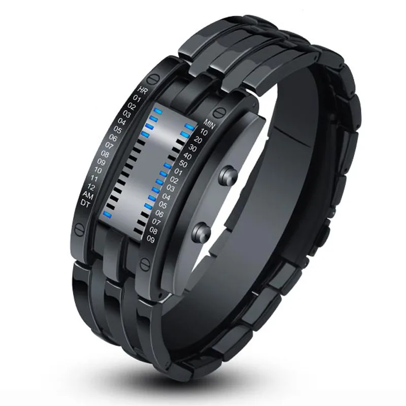 Мужские черные часы из нержавеющей стали с цифровым светодиодным бр...