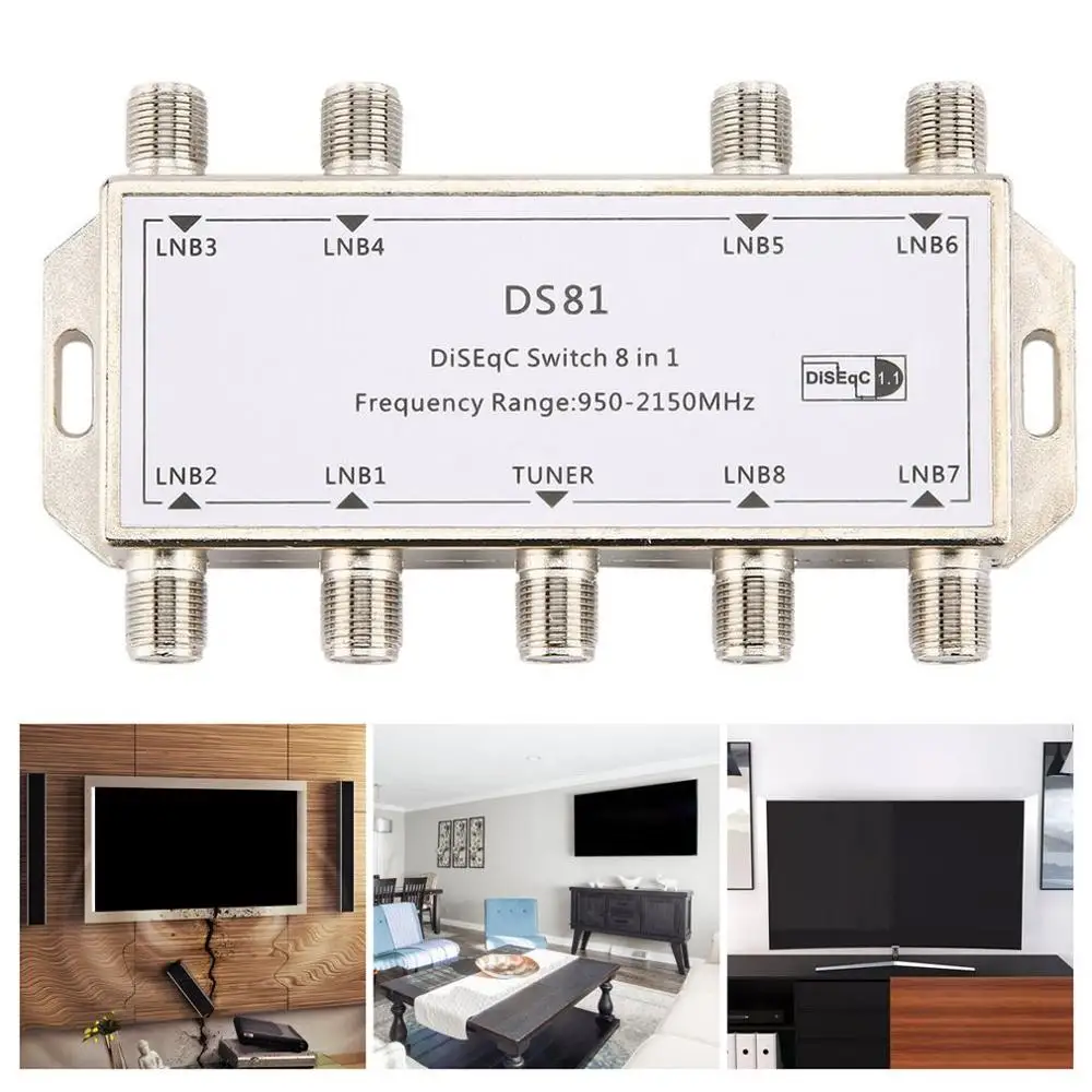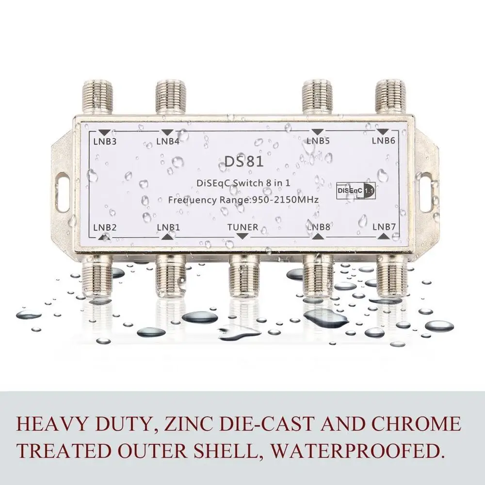 Горячая продажа DS81 8 в 1 спутниковый сигнал DiSEqC переключатель приемник LNB многовыключатель Сверхмощный Цинковый литой хромированный