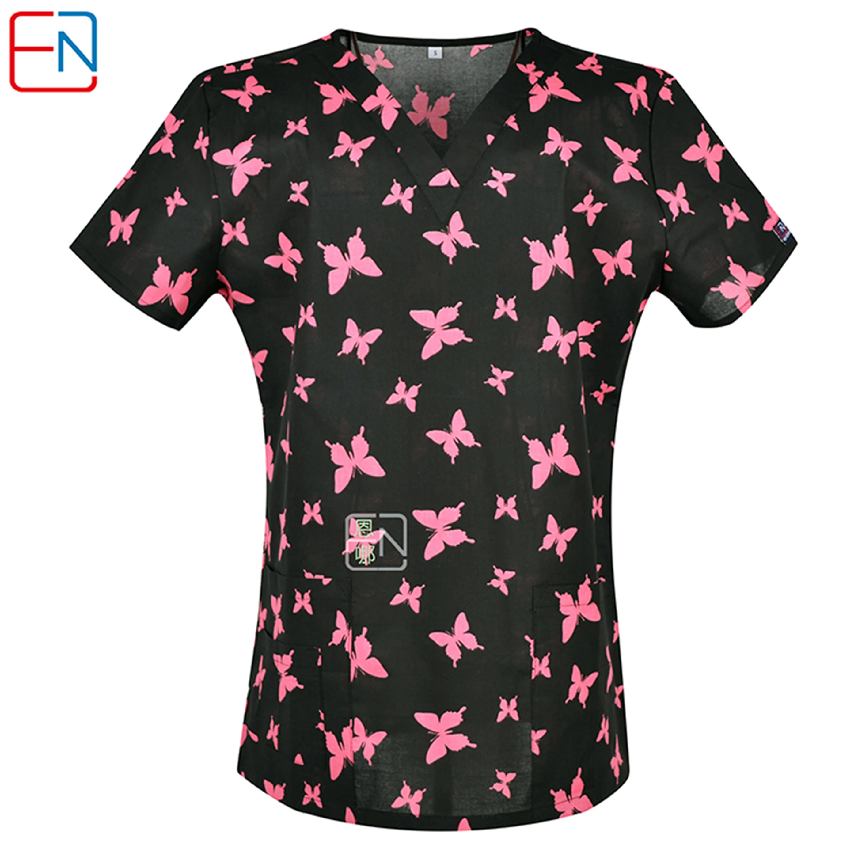 Большая распродажа, Женский скраб-топ с v-образным вырезом, 100% хлопок, принт, скраб, униформа