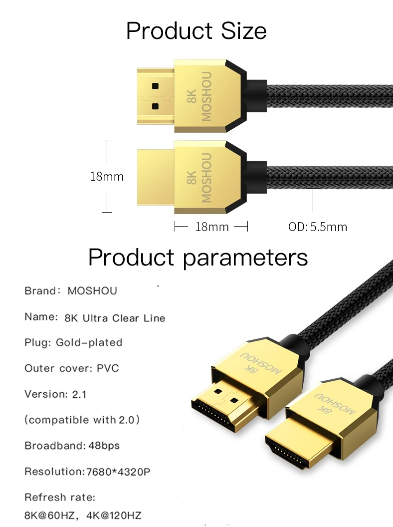 Видеокабель 8K, 60 Гц, 4K, 120 Гц, HDMI 2,1, 48 Гбитс, ARC HDR, Hi-Fi, MOSHOU, для проектора PS5, NS, мультимедийный интерфейс высокой четкости