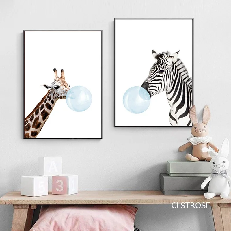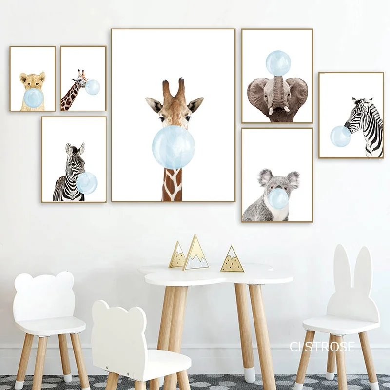 Милые Мультяшные животные, декоративные милые яркие детские постеры, холст для детской комнаты, детского сада, живопись, настенное искусство для детей