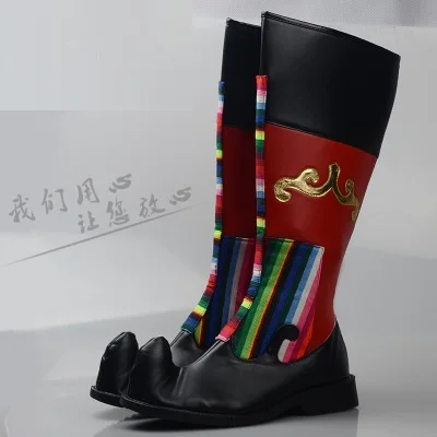 Монгольские ботинки для верховой езды, кожаная обувь для мужчин, этнические монгольские бойцы, уникальная боевая обувь для косплея для взрослых