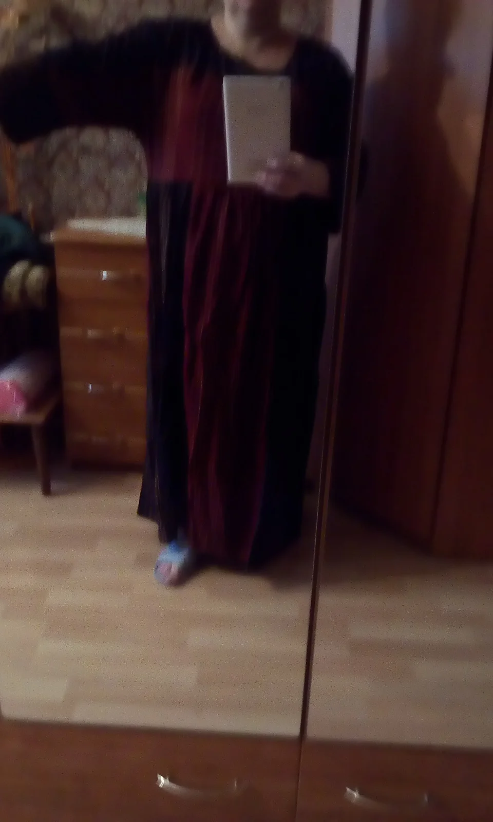 хорошее качество, скрывает все недостатки фигуры, точно хлопок 100%, тонкий, но не просвечивает, длина хорошая, ниже середины икры, но рост у меня 161, на высоких будет выше. расцветка чуть темнее, чем на фото, швы ровные, при стирке красит воду. в целом довольна, рекомендую, доставка очень быстрая, центр урала за 12 дней.
