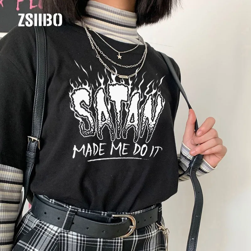 Футболка Satan Made Me Do It с алфавитом в стиле хип-хоп, панк, готика, Harajuku, повседневная, большой размер, повседневная, модная женская футболка с коротким рукавом, Веселый дьявол
