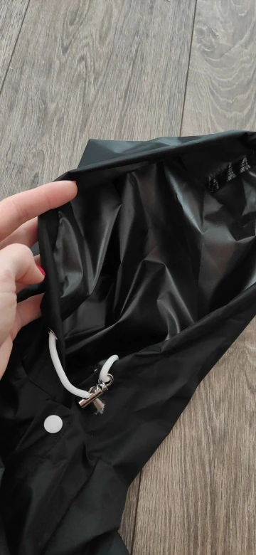Очень крутая, ткань как типичная для плаща, но со всеми его утенками, шапкой и пуговицами, мне очень понравилось, если он сломается, я куплю еще один, плюс это очень забавно и доставка была быстрой