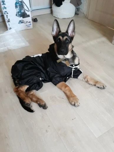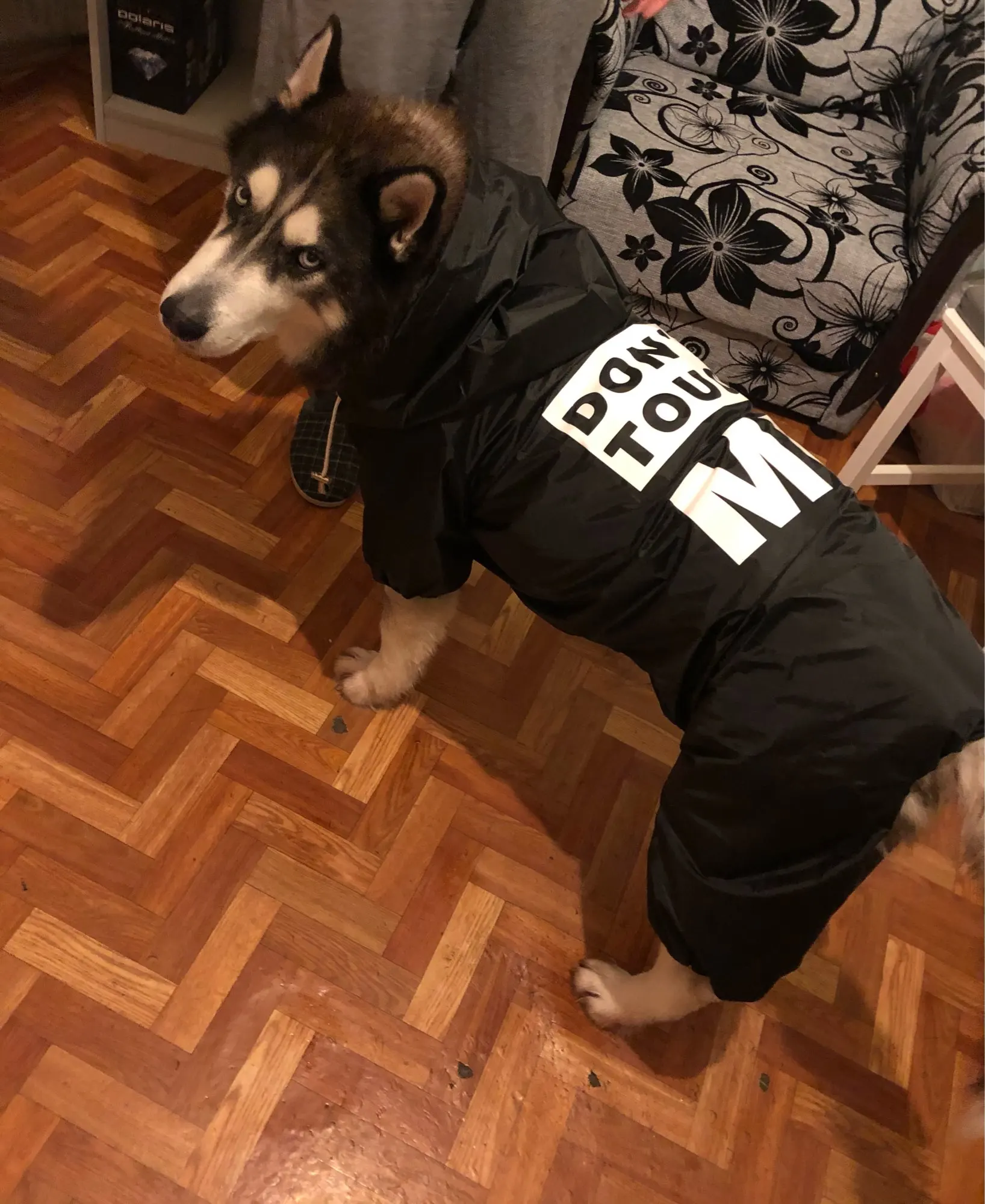 Хороший плащ, качественные швы, интересная модель. Только размер нужно брать с запасом по холке, иначе будет тянуть в районе передних лап и шеи. 7xl на грудь 85 - безбожно мал, хотя во всем остальном сидит идеально