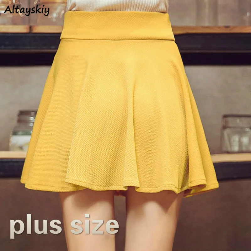 Женские юбки с высокой талией трапециевидной формы однотонного размера плюс мини в Корейском стиле трендовые универсальные уличные винтажные повседневные женские юбки Kawaii