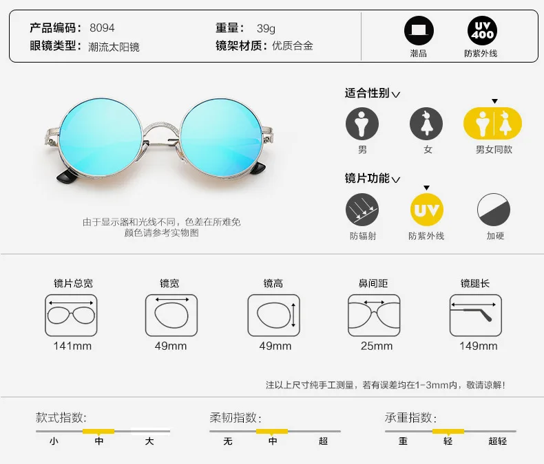 Круглые классические зеркальные солнцезащитные очки в стиле стимпанк, винтажные Круглые Солнцезащитные очки Sung lass для мужчин и женщин, брендовые дизайнерские очки UV400