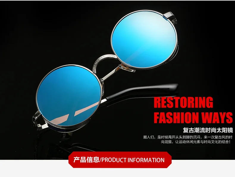 Круглые классические зеркальные солнцезащитные очки в стиле стимпанк, винтажные круглые металлические очки для мужчин и женщин, брендовые дизайнерские солнцезащитные очки UV400