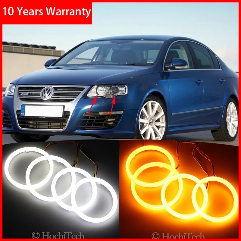 Светодиодный поворотник с хлопковым переключением, белый Янтарный ангельский глаз, кольца с ореолом, DRL светильник ры указателя поворота для Volkswagen VW Passat B6 Magotan 2006-2010
