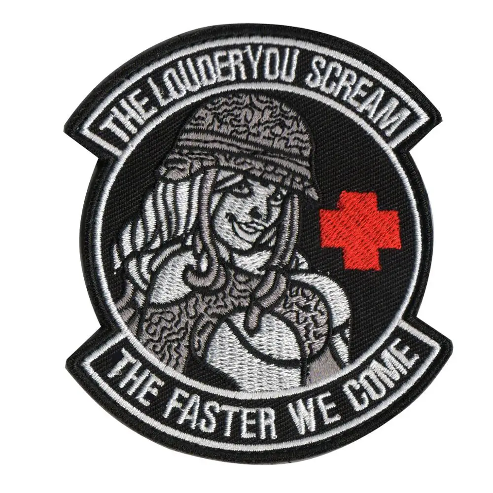 Сексуальная медсестра, громче Вы кричите, чем быстрее мы приближаем эмблему Вышивка Аппликации Значки, военный армейский Тактический крючок и петля