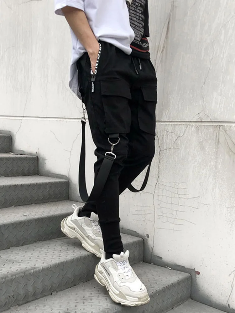 Брюки-карго мужские с множеством карманов, черные штаны с эластичным поясом, шаровары в стиле хип-хоп, уличная одежда, брюки-джоггеры в стиле панк, тактические штаны