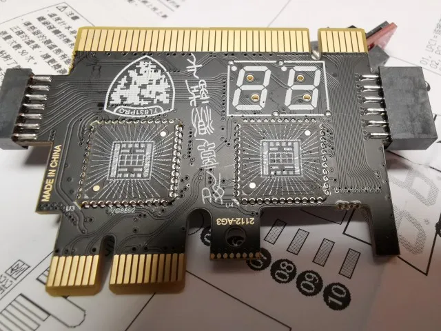 Не является универсальным, как реклама. Эта модель диагностической карты только считывает код gigabyte bios дисков. Для других брендов не работает, не показывает коды биос, только ноль, ноль. Протестировано в работе и все еще не показывает коды. Работает только на бренда gigabyte. Таким образом, кто работает с диагностическим обслуживанием эта модель!