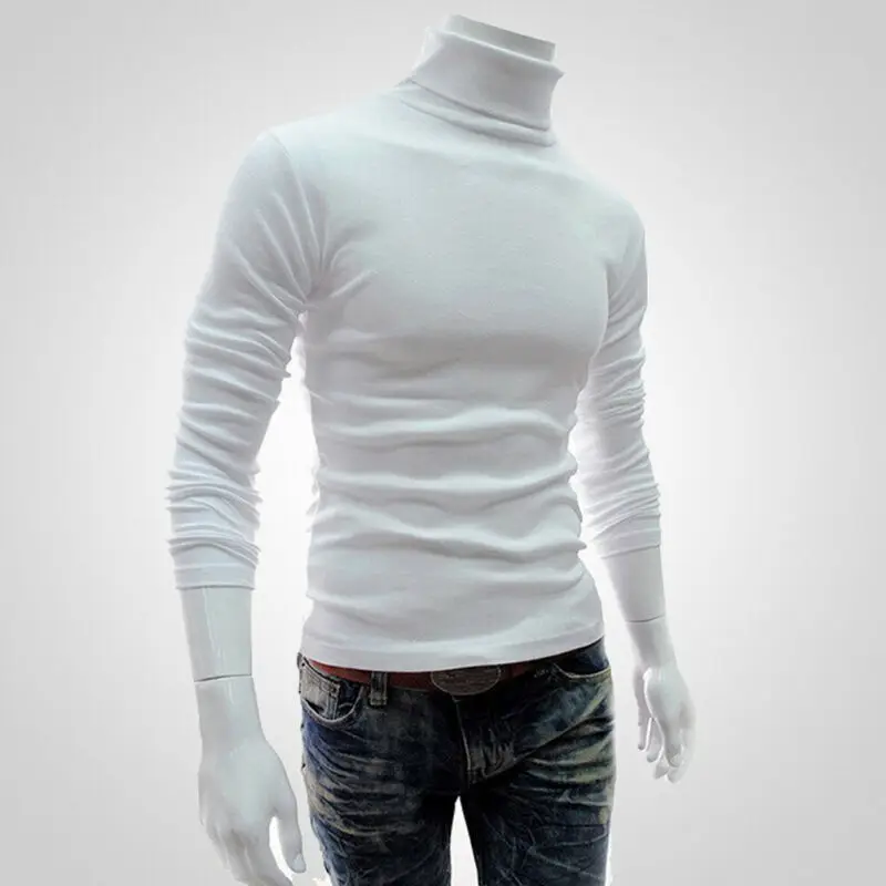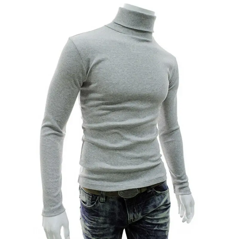 Модный повседневный мужской пуловер из смеси хлопка с высоким воротником на осень и зиму, джемпер, Однотонный свитер, топы, водолазка