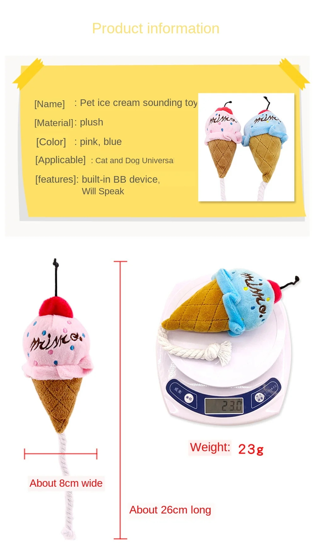 1 шт. плюшевые скрипучие игрушки для собак, устойчивые к укусам чистые игрушки для жевания щенками, обучающая игрушка, мягкие игрушки для мороженого, товары для домашних животных