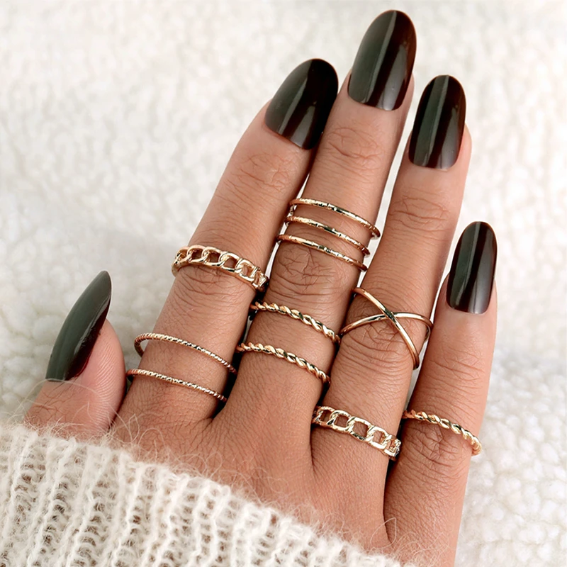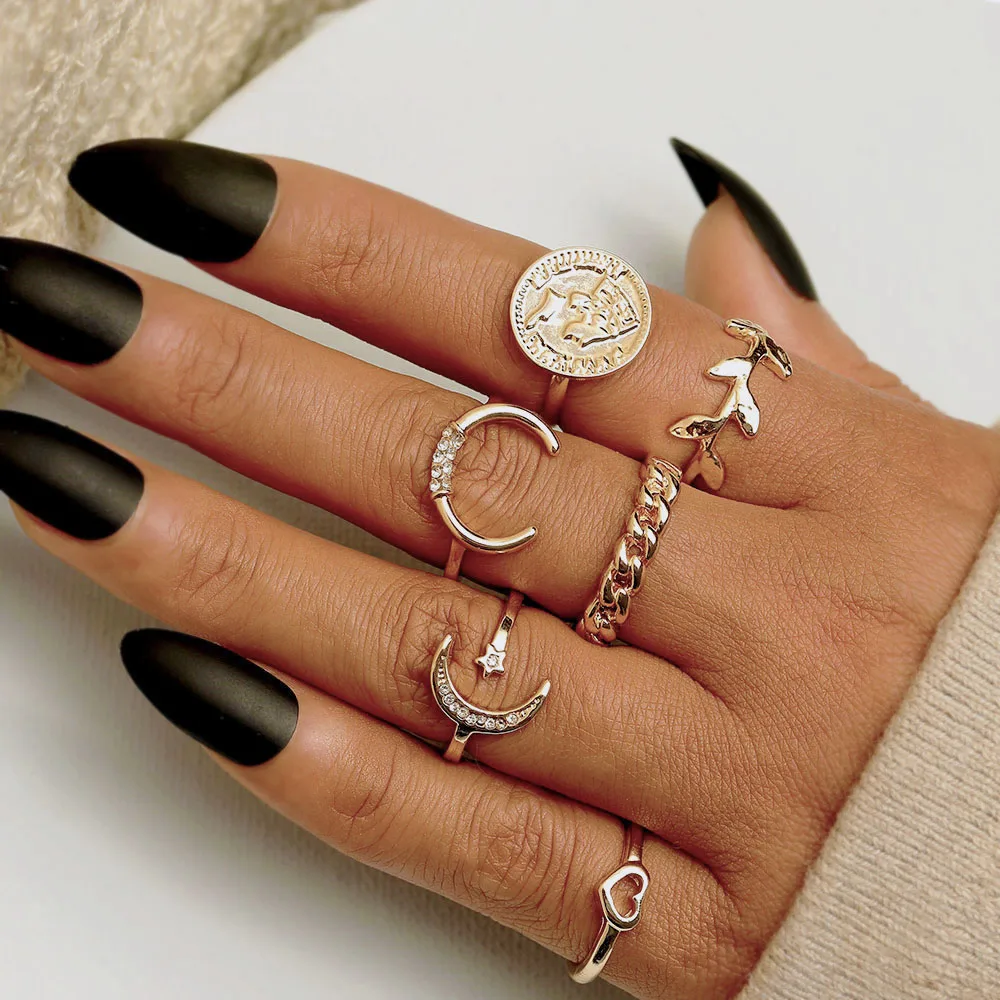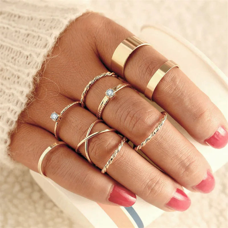 Набор Колец IPARAM с кристаллами Женский, винтажный комплект из сплава под золото и серебро в богемном стиле, ювелирные украшения для подарка