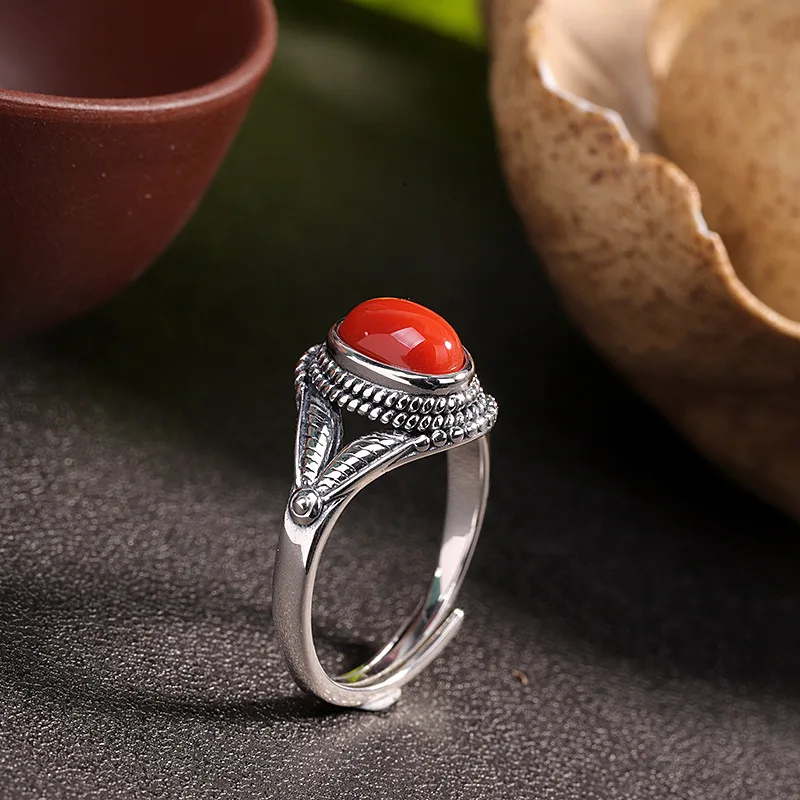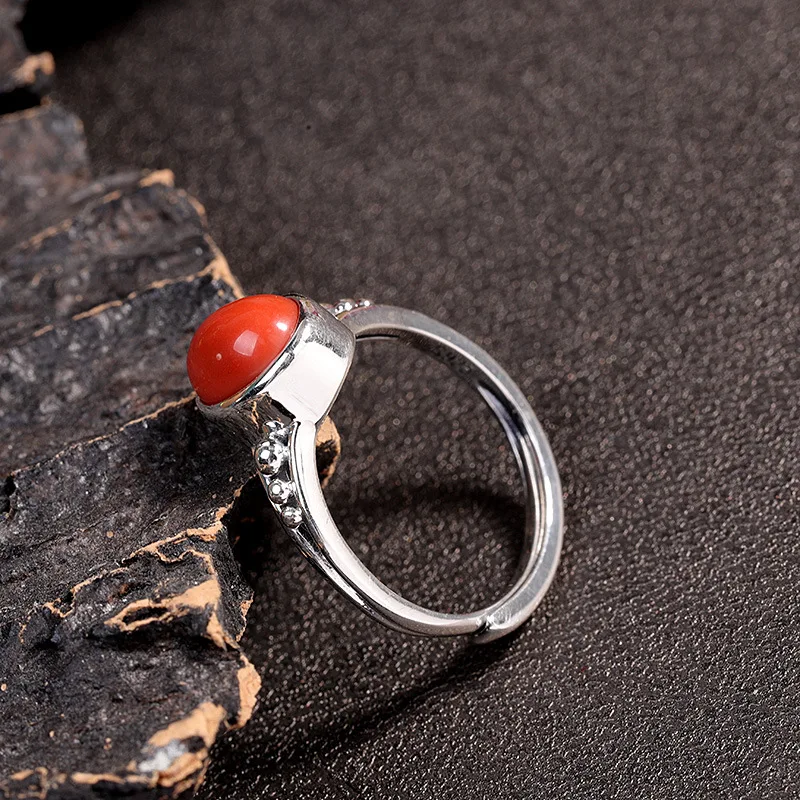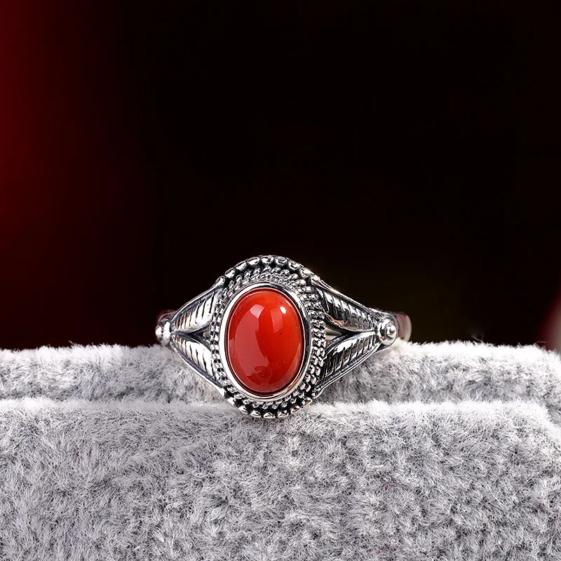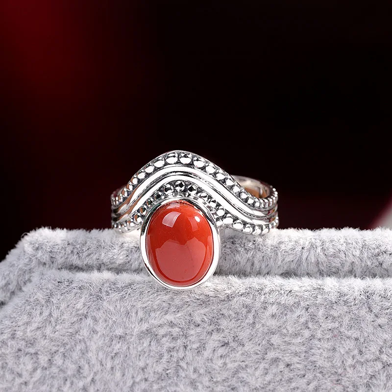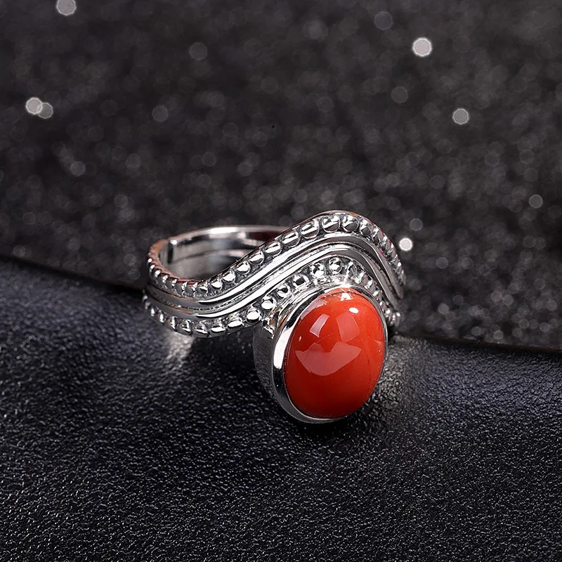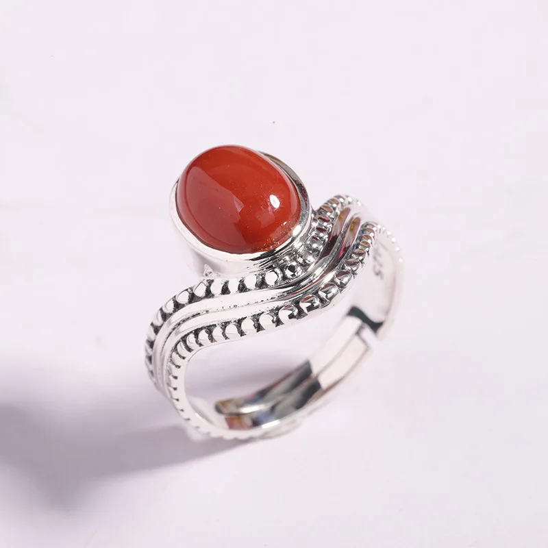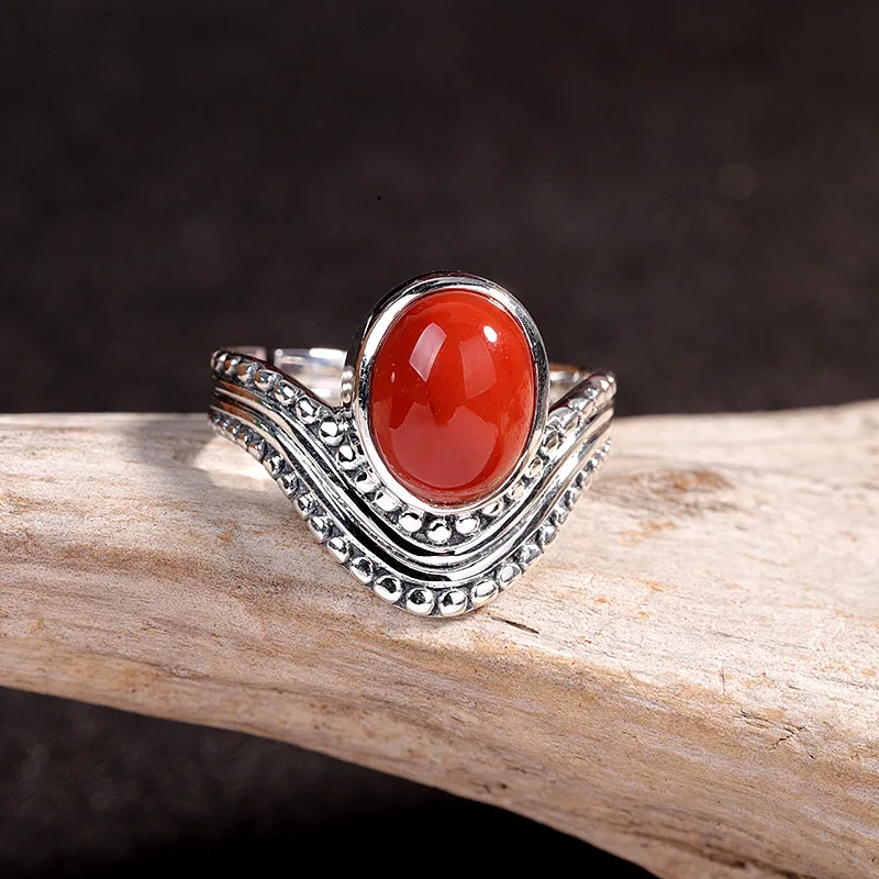 Женские кольца без магния кораллового красного агата, этнические минималистичные открытые кольца с драгоценными камнями, однотонное ювелирное изделие из стерлингового серебра 925 пробы