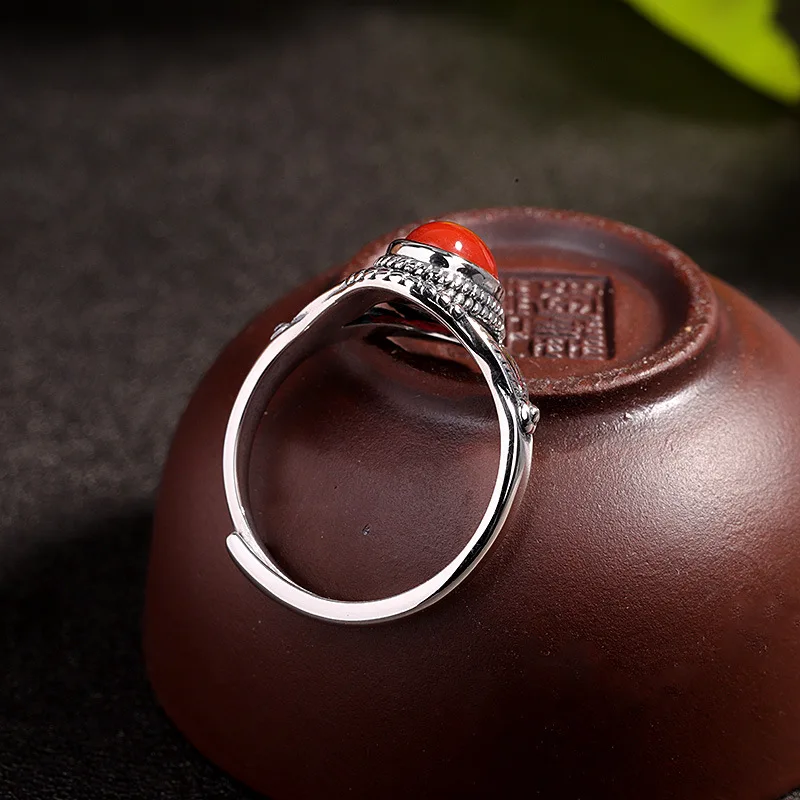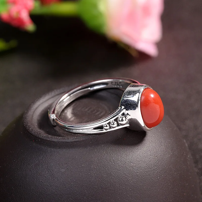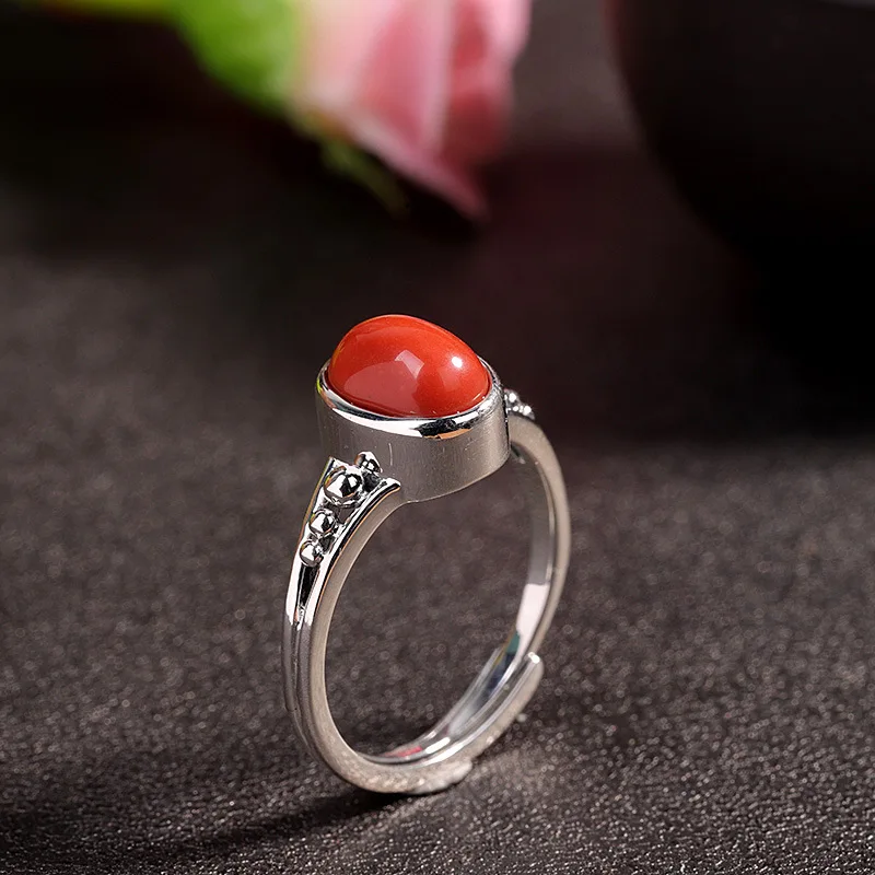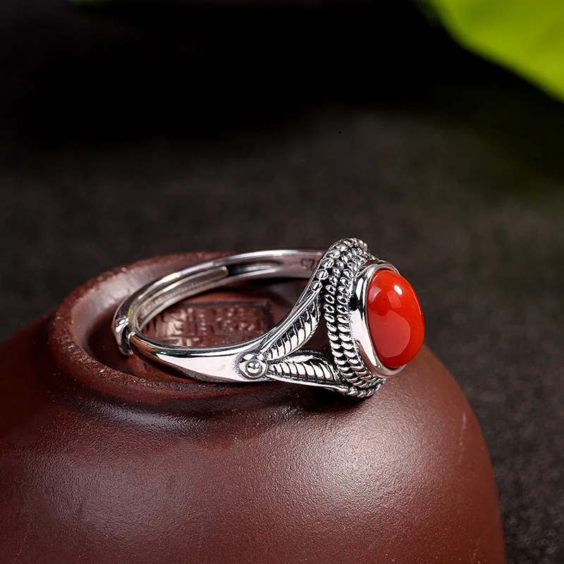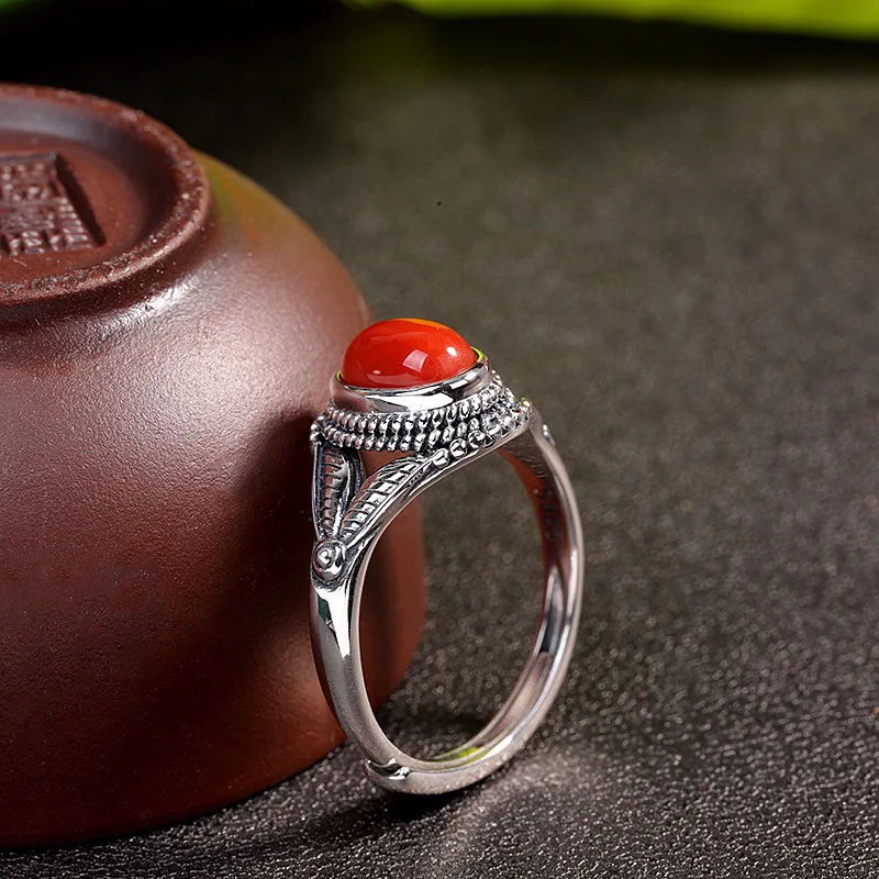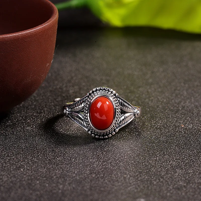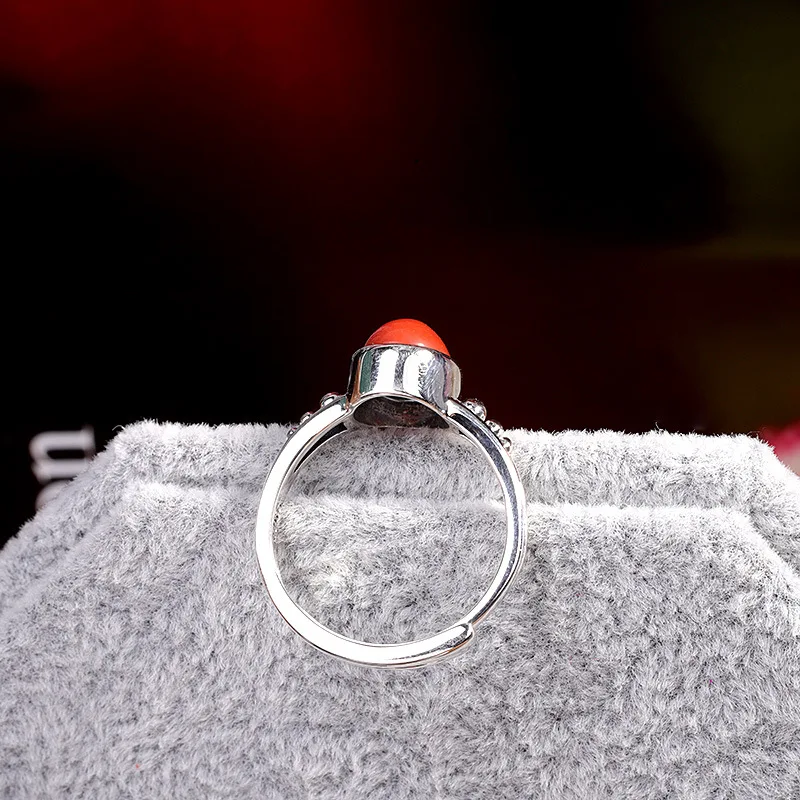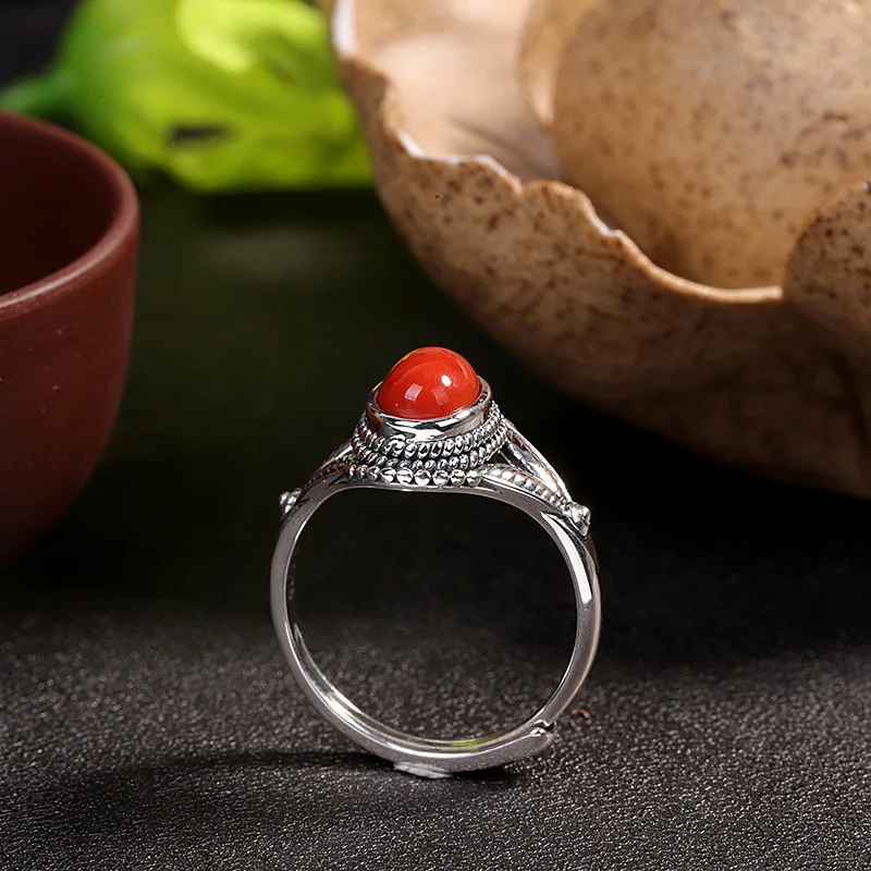 Женские кольца без магния кораллового красного агата, этнические минималистичные открытые кольца с драгоценными камнями, однотонное ювелирное изделие из стерлингового серебра 925 пробы