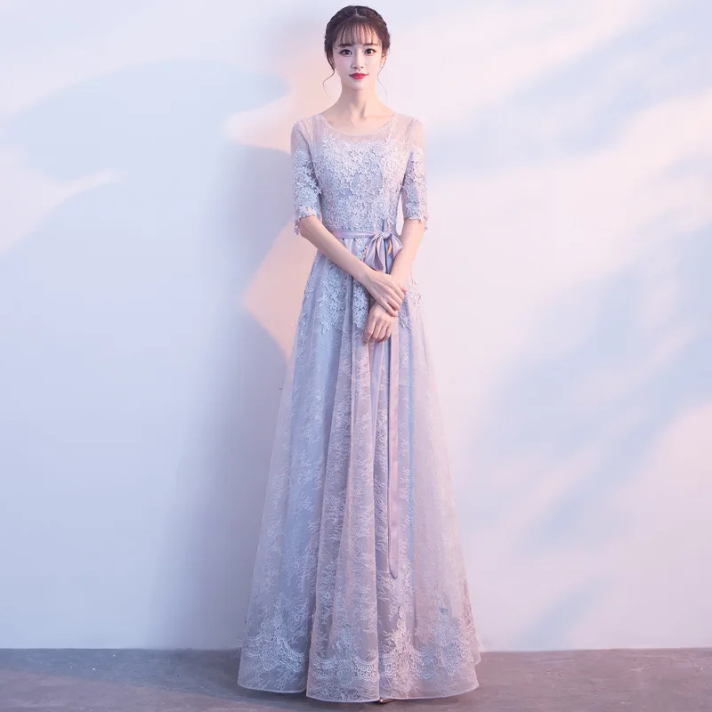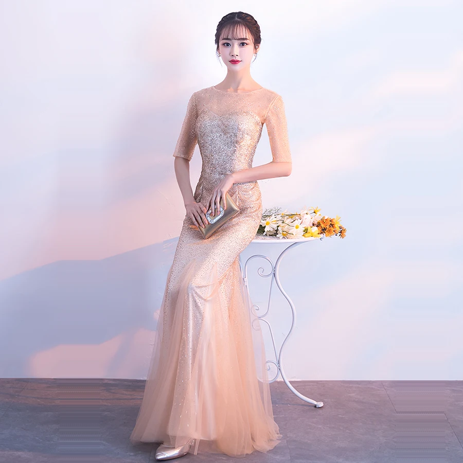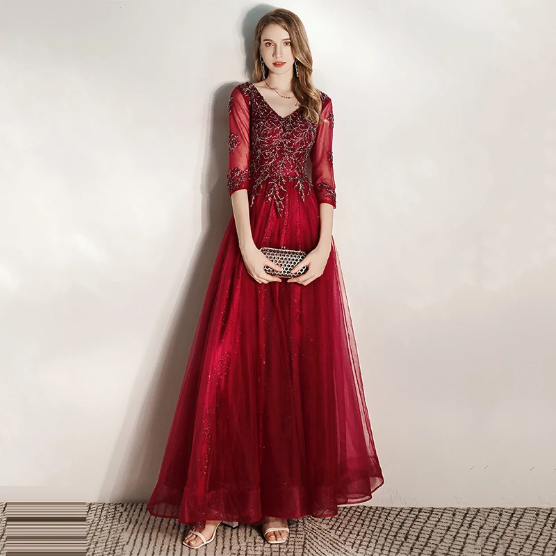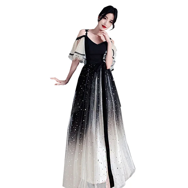 Женское вечернее платье, черное, из тюля, с блестками, с расклешенным рукавом, на шнуровке, для подружки невесты, модель R262