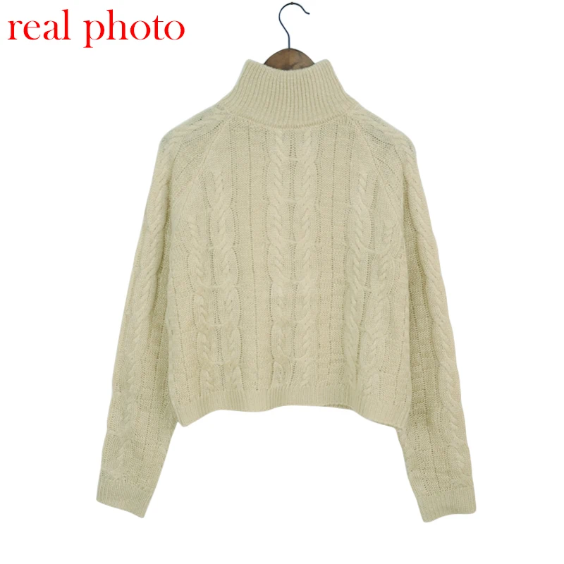 Свитер с высоким воротником, укороченный Вязаный Свитер оверсайз, ж...