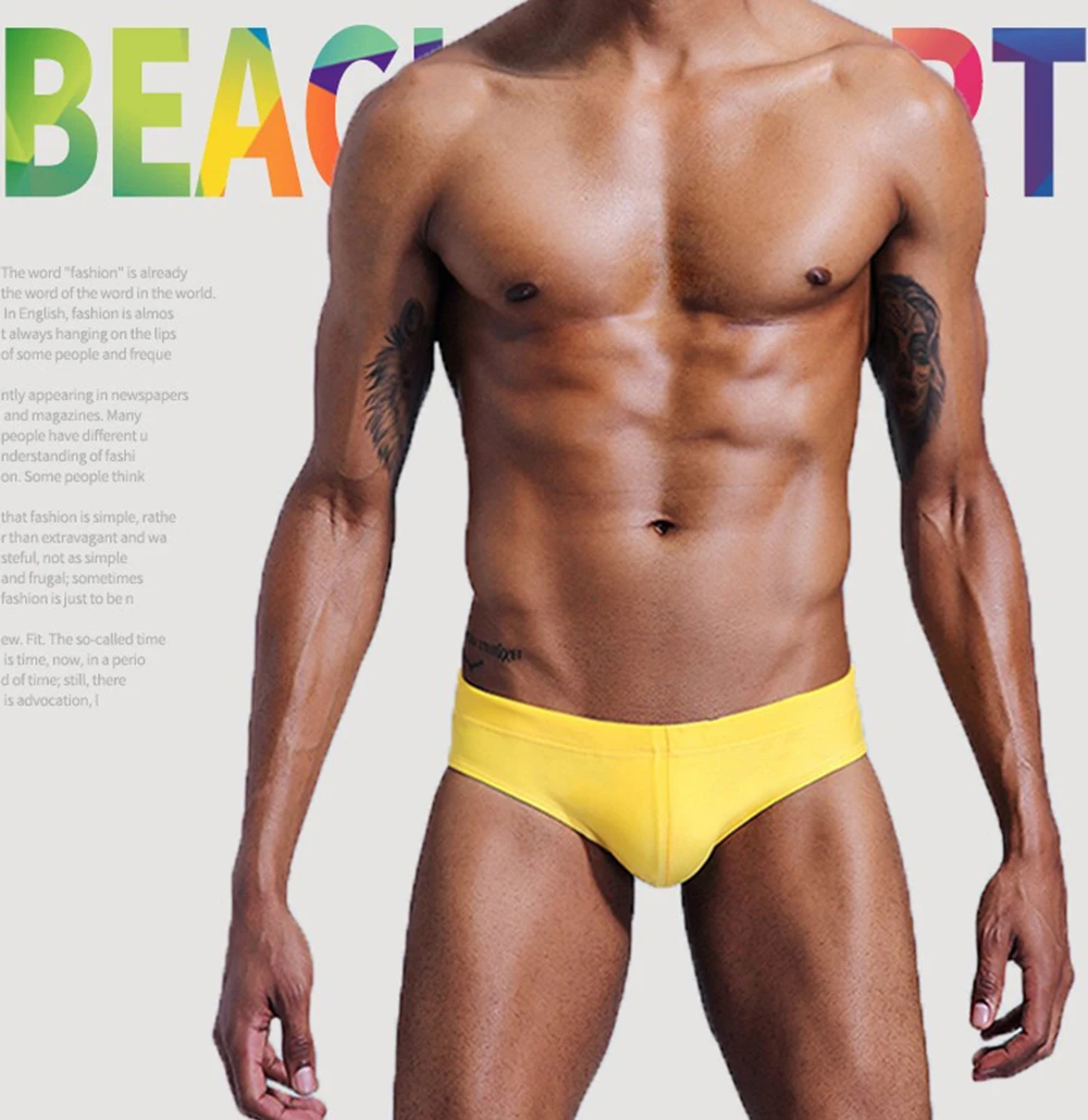 Новинка 2021, мужские плавательные брифы, сексуальный однотонный ку...