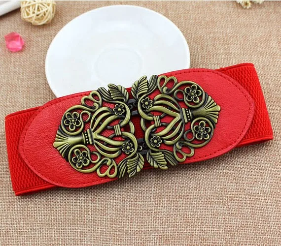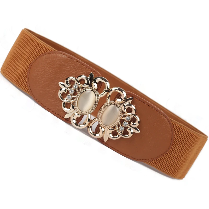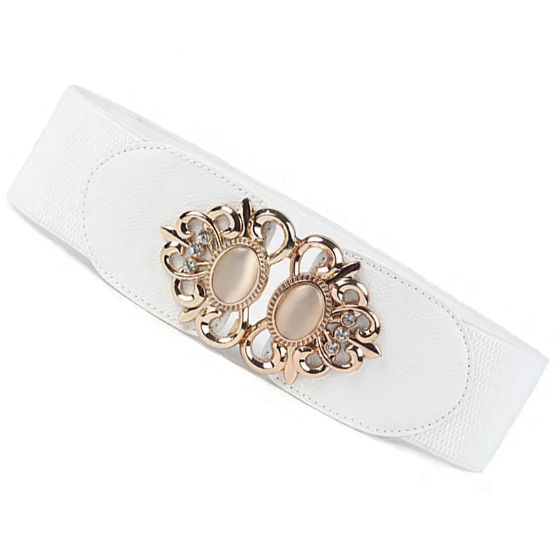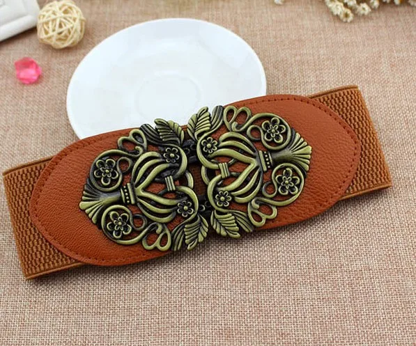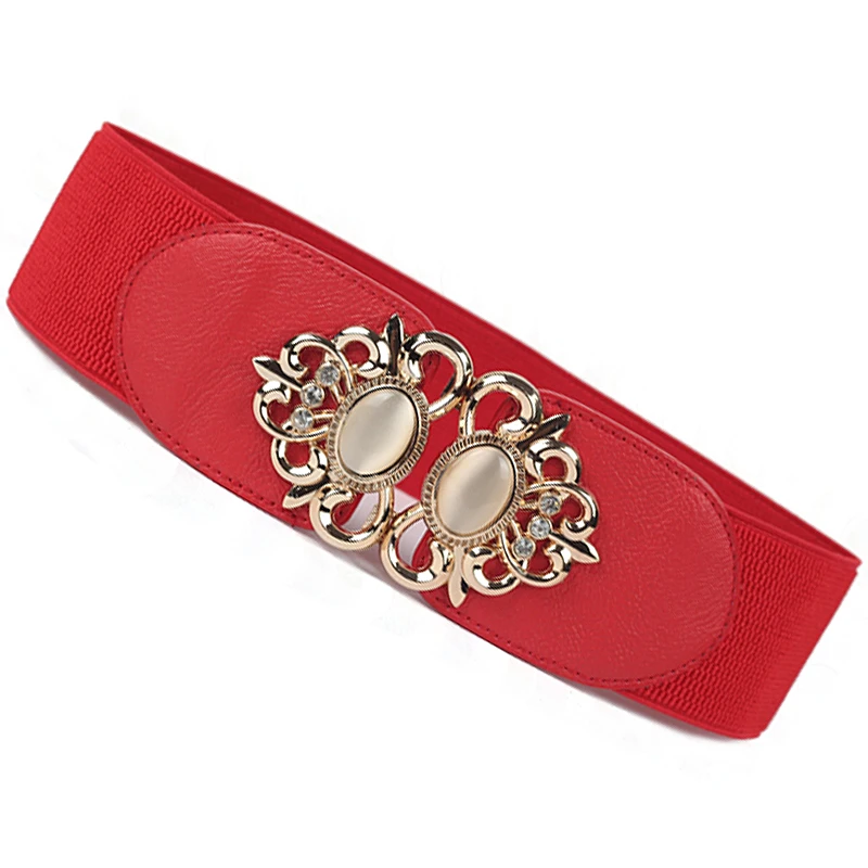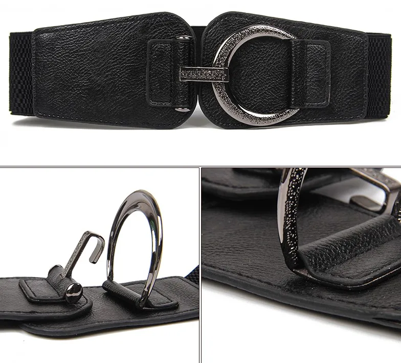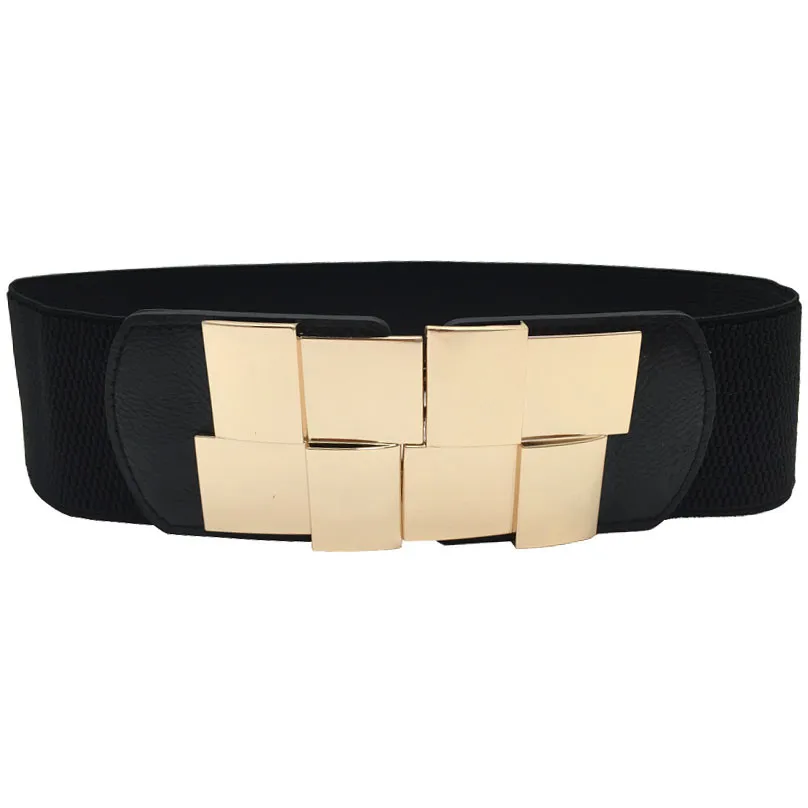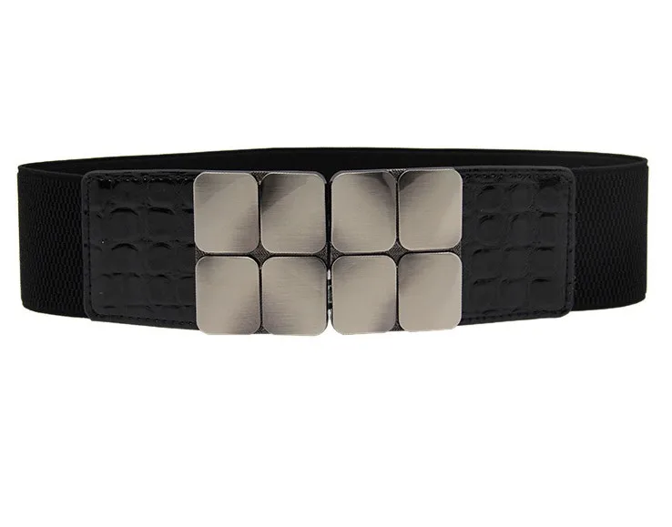 Ремень женский, однотонный, эластичный, широкий, с пряжкой из сплава, черный
