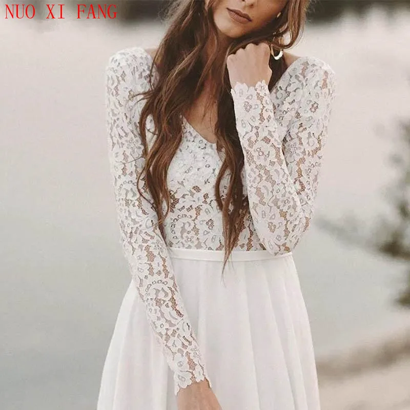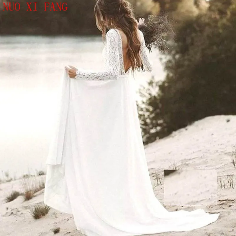 Женское свадебное платье NUOXIFANG, белое кружевное платье цвета слоновой кости с v-образным вырезом и открытой спиной, длинное пляжное платье в стиле бохо, 2020