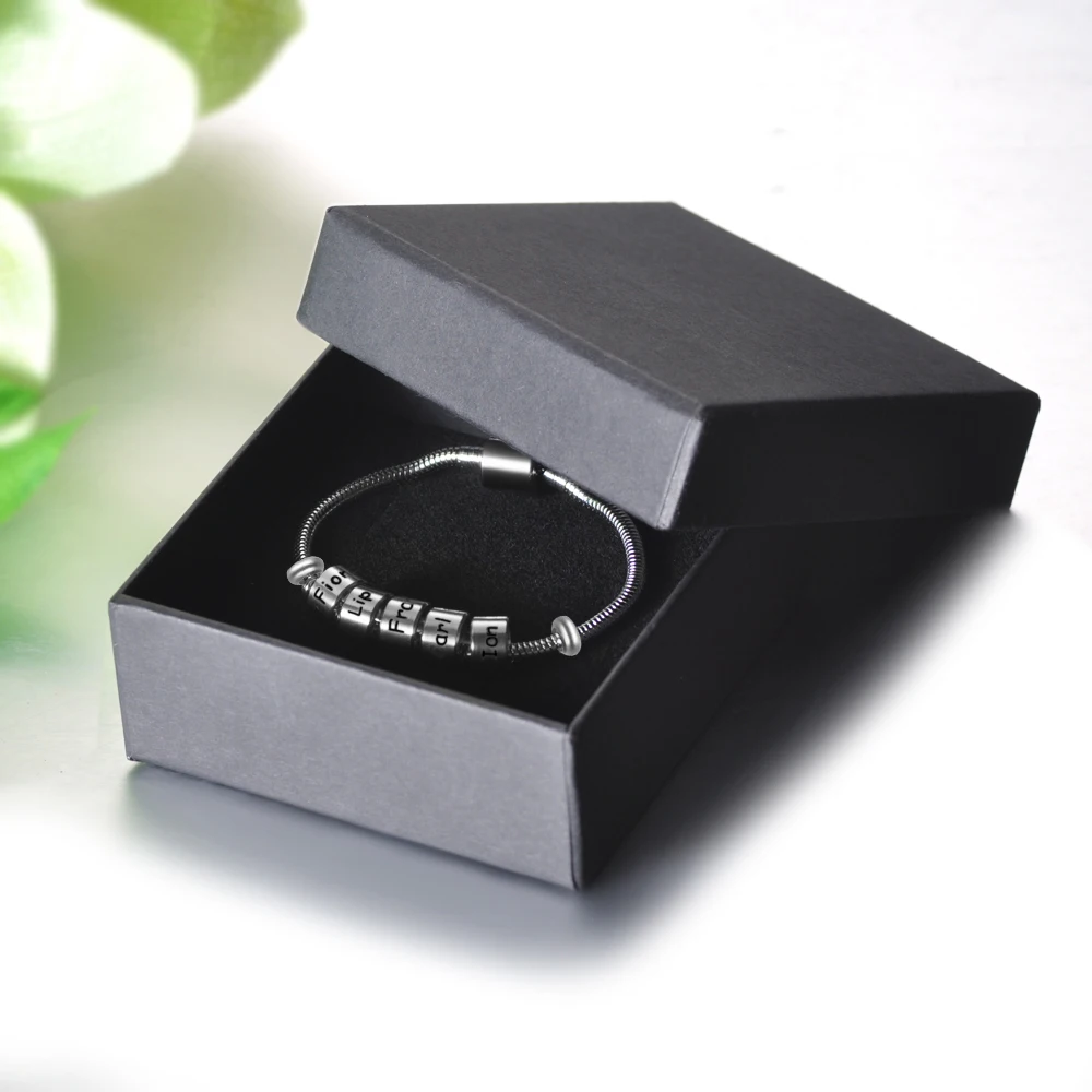 Персонализированные из нержавеющей стали на заказ, семейные имена, бусины, амулеты, браслеты, змеиная цепочка, браслет для мужчин и женщин, ювелирные изделия, вечерние, Подарочные SL-168