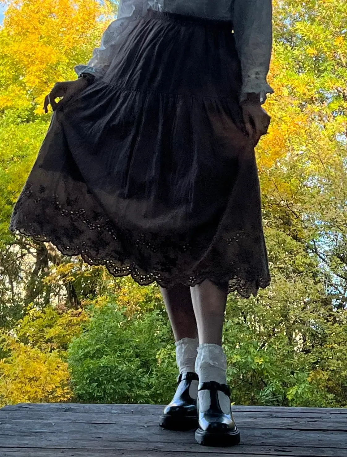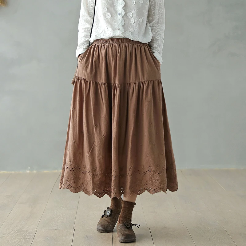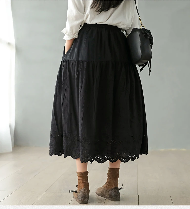 Длинная Однотонная юбка в Стиле Лолита, однотонная хлопковая винтажная юбка с вышивкой, весна-лето 100%