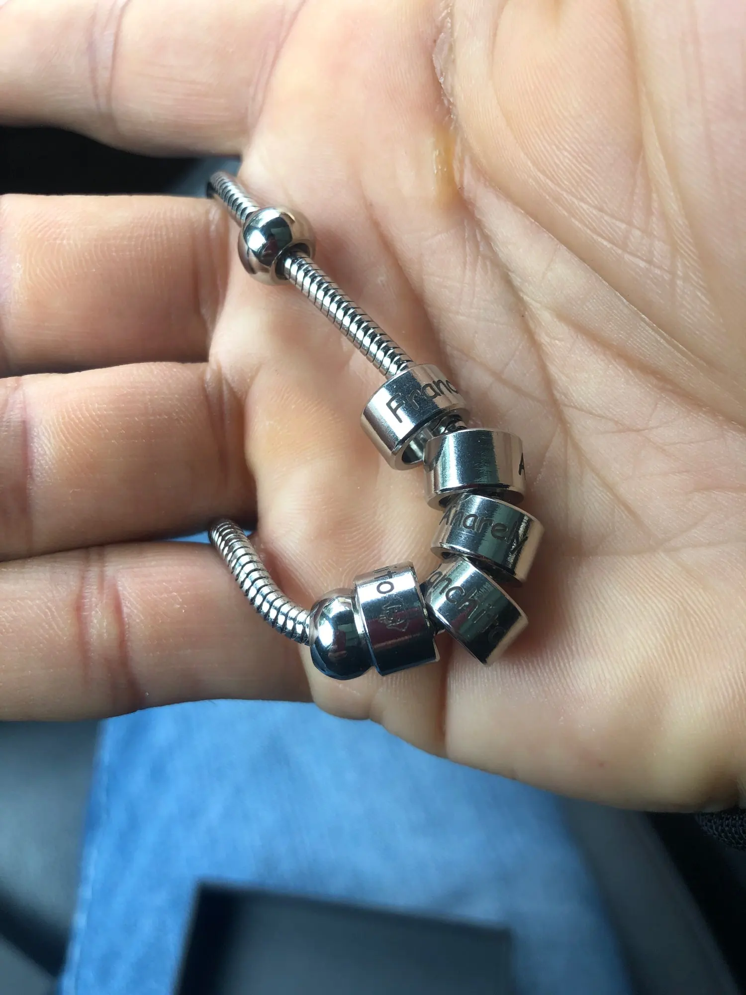 Материал: нержавеющая стальБусины: 1-8 бусины могут выгравироватьШирина: 0,4 смПоддержка местного языка: имя, логотип, номер телефона, буквы, фразы,...Кроме того, мы можем выгравировать логотип, звуковые волны, Морзе, ЭКГ, координаты, девиз, фраз и т. Д.Посылка: 1 x пользовательский браслет с тонкой коробкой