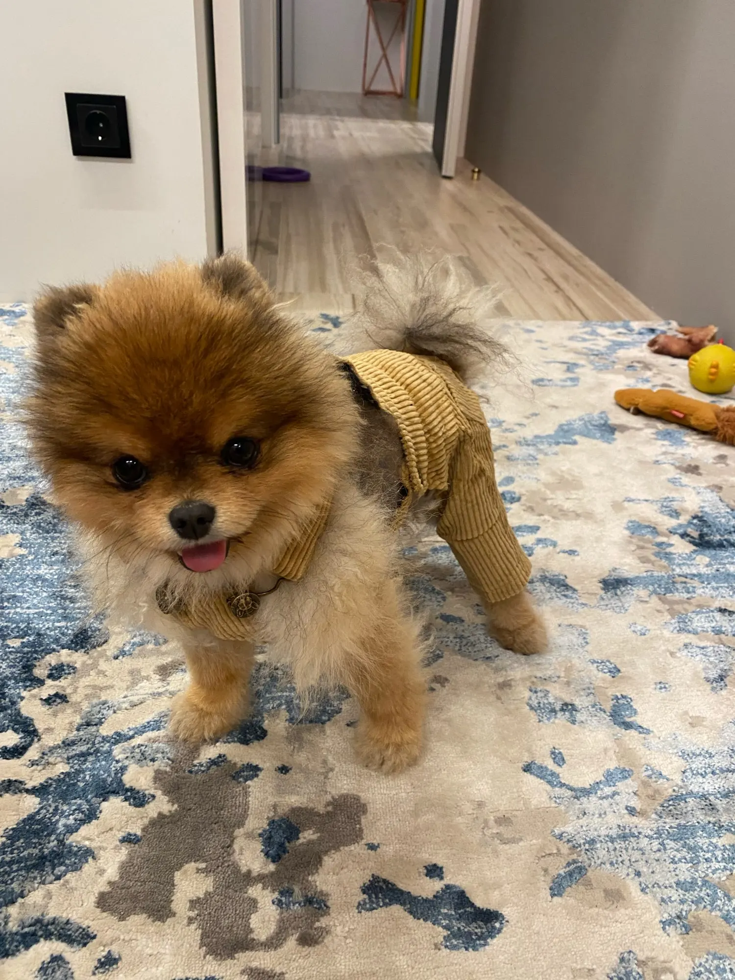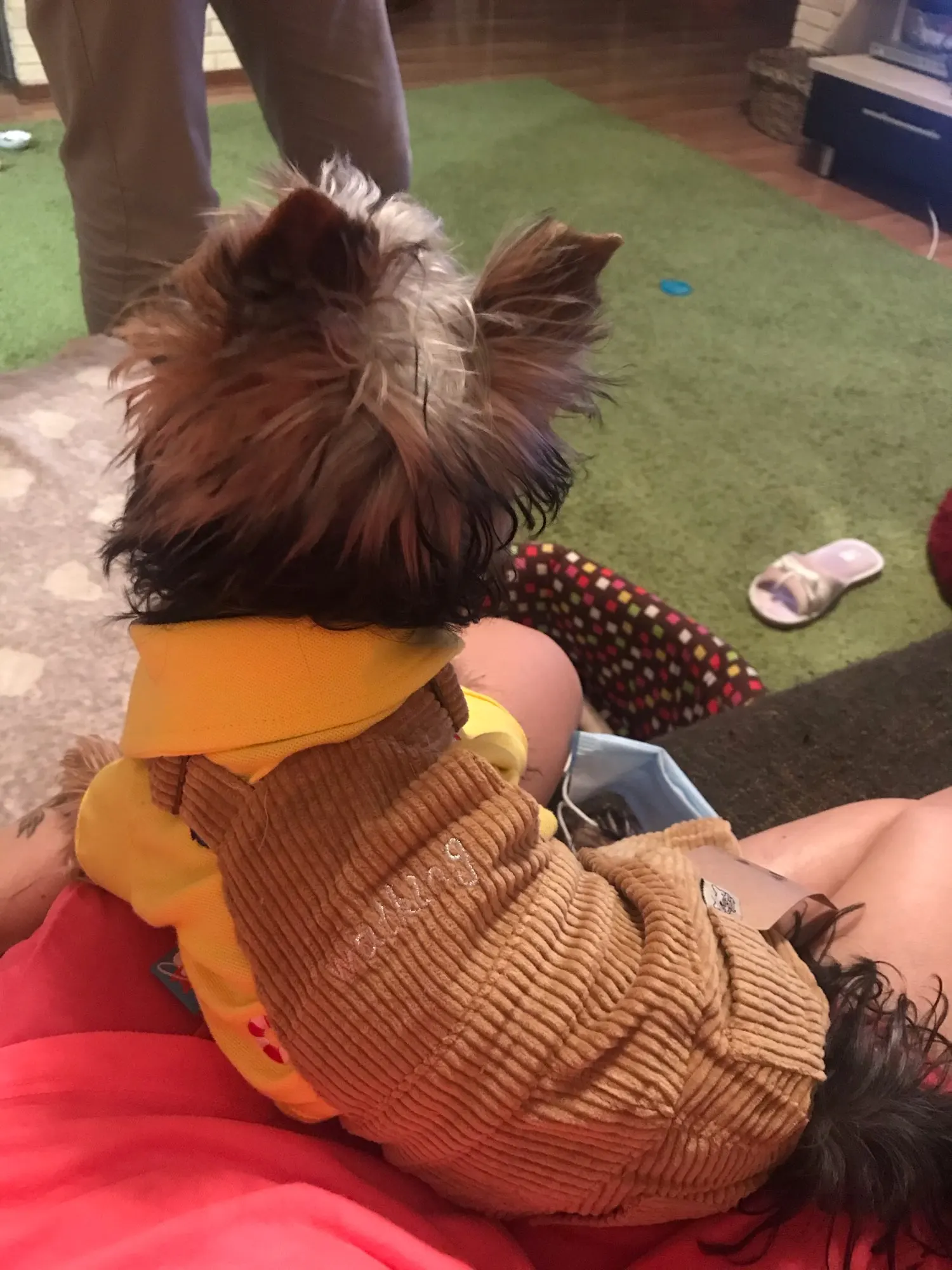 Очень красивый, мягкий комбинизончик регулируется по длине и ширине. Правда чтобы хорошо сидел лутче в следующей раз брать больше нам немного закрывает хвостик хотя можно порегулировать и будет Найс, возможно если заказать больше то будет большой. Наши параметры: Спина и грудь по 40см пришло новой почтой за 2 недели Фото на собачке брала из видео поэтому такое качество не очень)