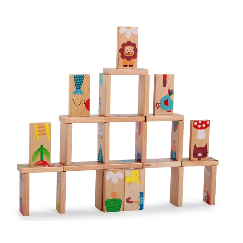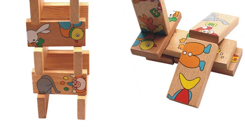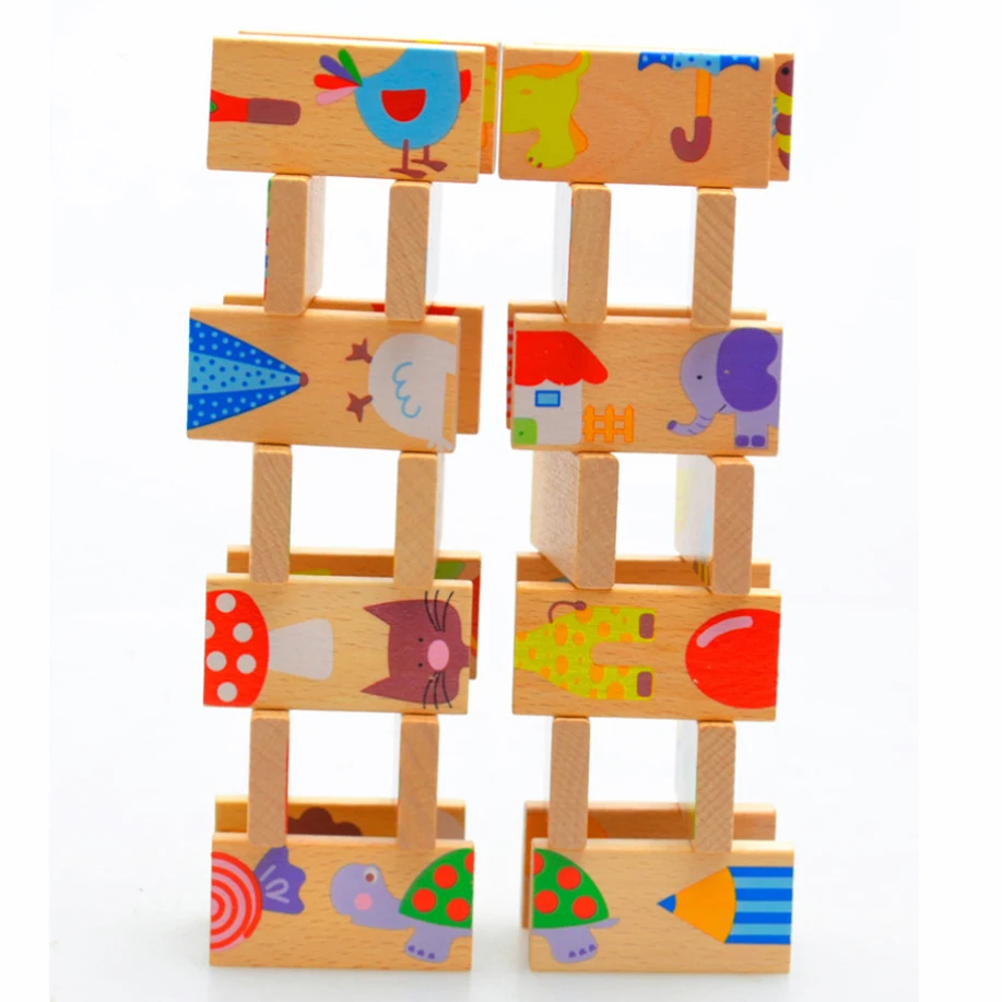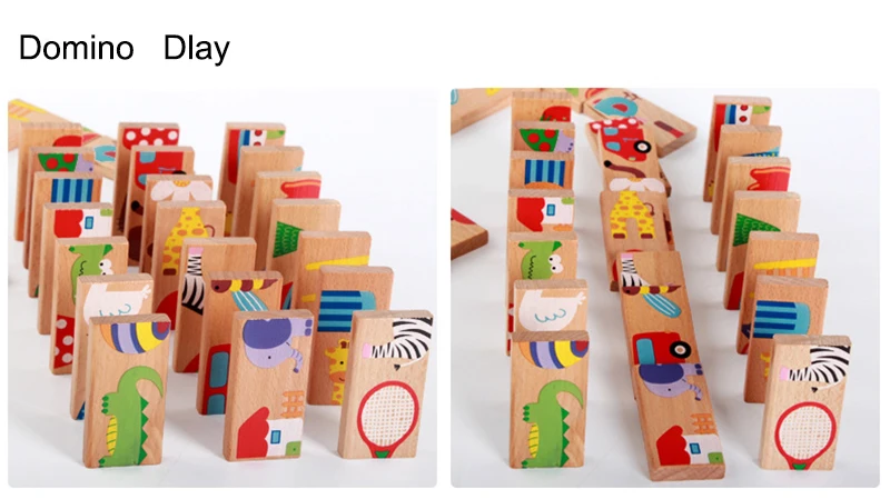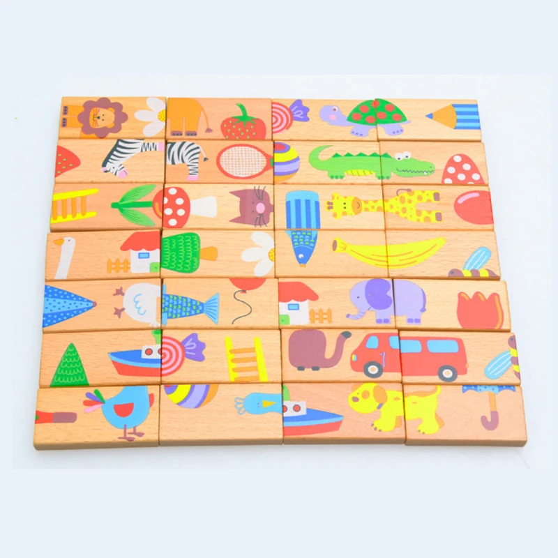 Деревянная детская игрушка домино распознавание животных Дети Обучающие строительные блоки игрушки Настольные игры сложенные развивающие игрушки