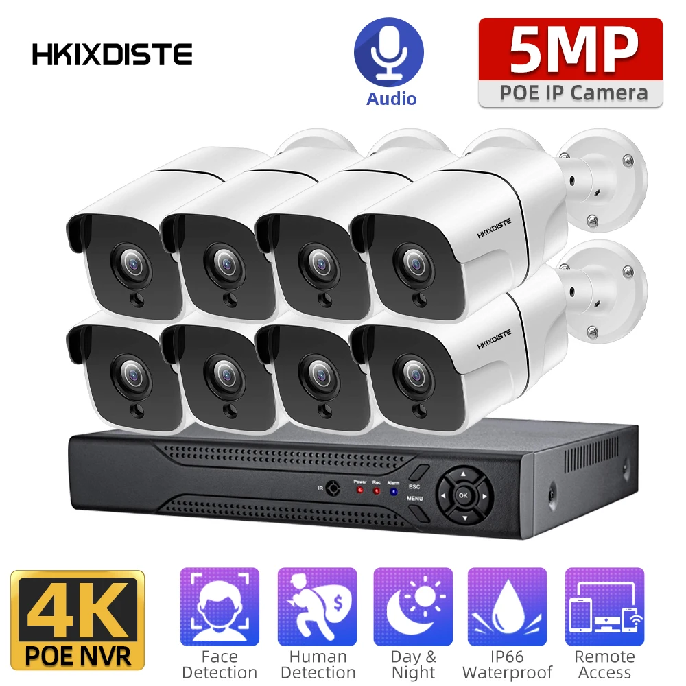 Распознавание лиц Full HD 5.0MP 8CH POE NVR 48V CCTV система 5MP HD наружная IP камера 8CH 5MP PoE камера безопасности комплект HDMI VGA P2P