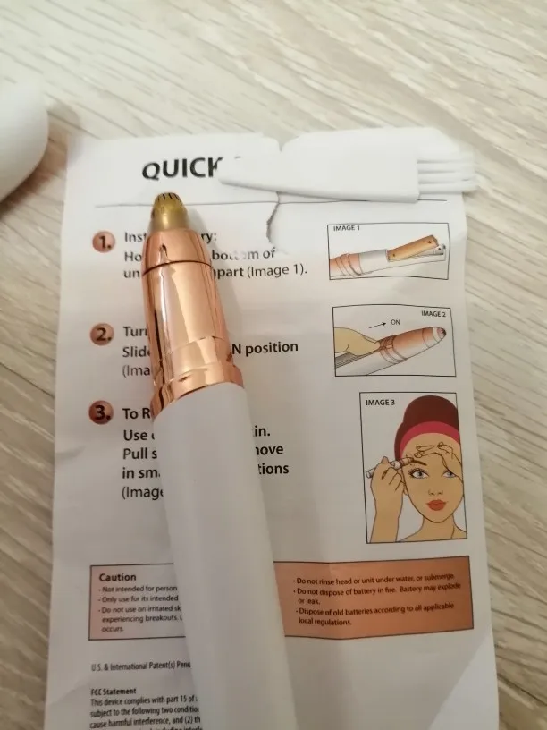 вставила батарейку мизинчиковую. включила. не сразу получилось. потом приноровилась. действително удаляет. безболезненно.