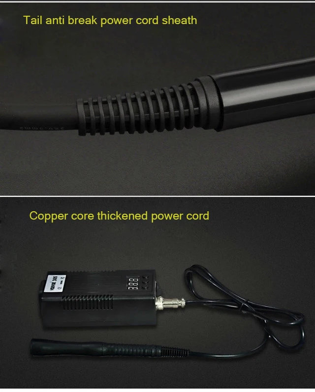 ● Использует цифровой дисплей Trinity.● Сплит-дизайн, легко заменить.● Дизайн ручки, легкий, длительное использование без усталости.● Конструкция нагревателя, разумная структура, легко заменить.● Металлическая ручка позволяет использовать более удобно.● Импортные силиконовые ручки, Высокотемпературные материалы, мягкий провод, приятный на ощупь.● Не требует специальных знаний; Общий персонал может заменить обогреватель.● Креативная железная рама, удобна в использовании.● С дополнительной губкой для очистки.