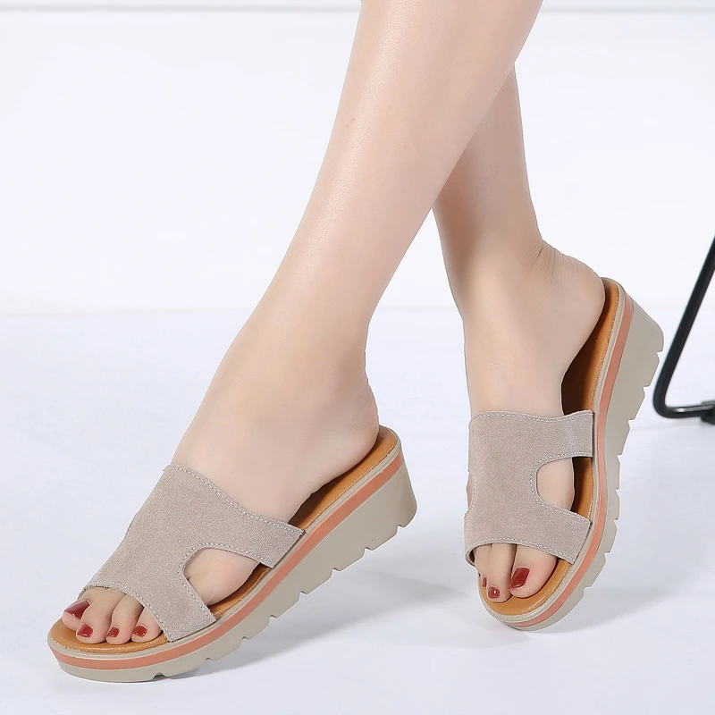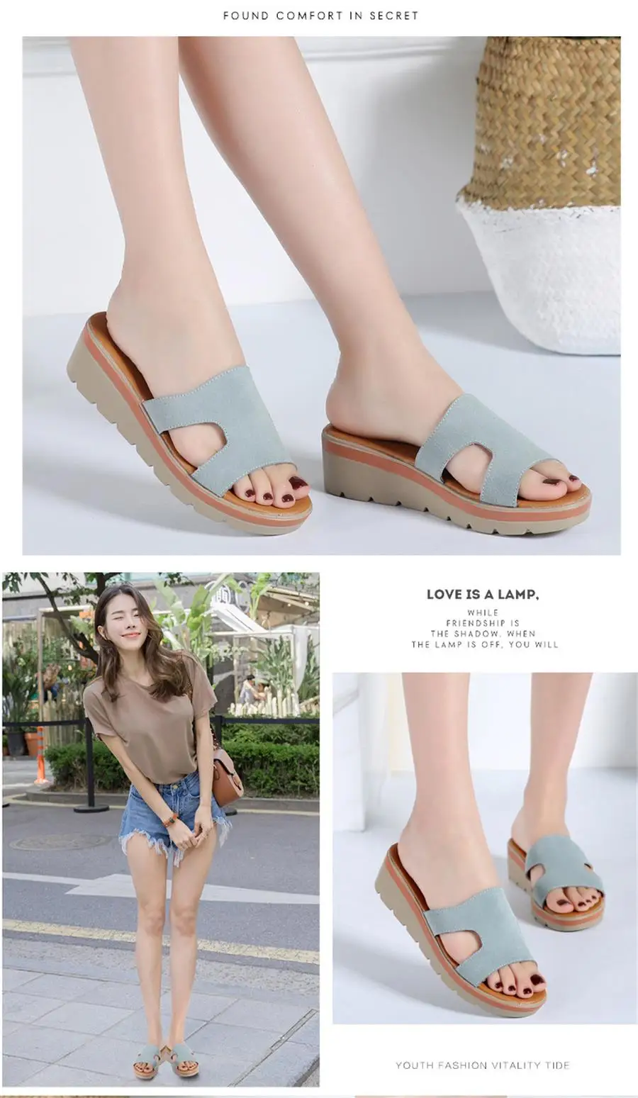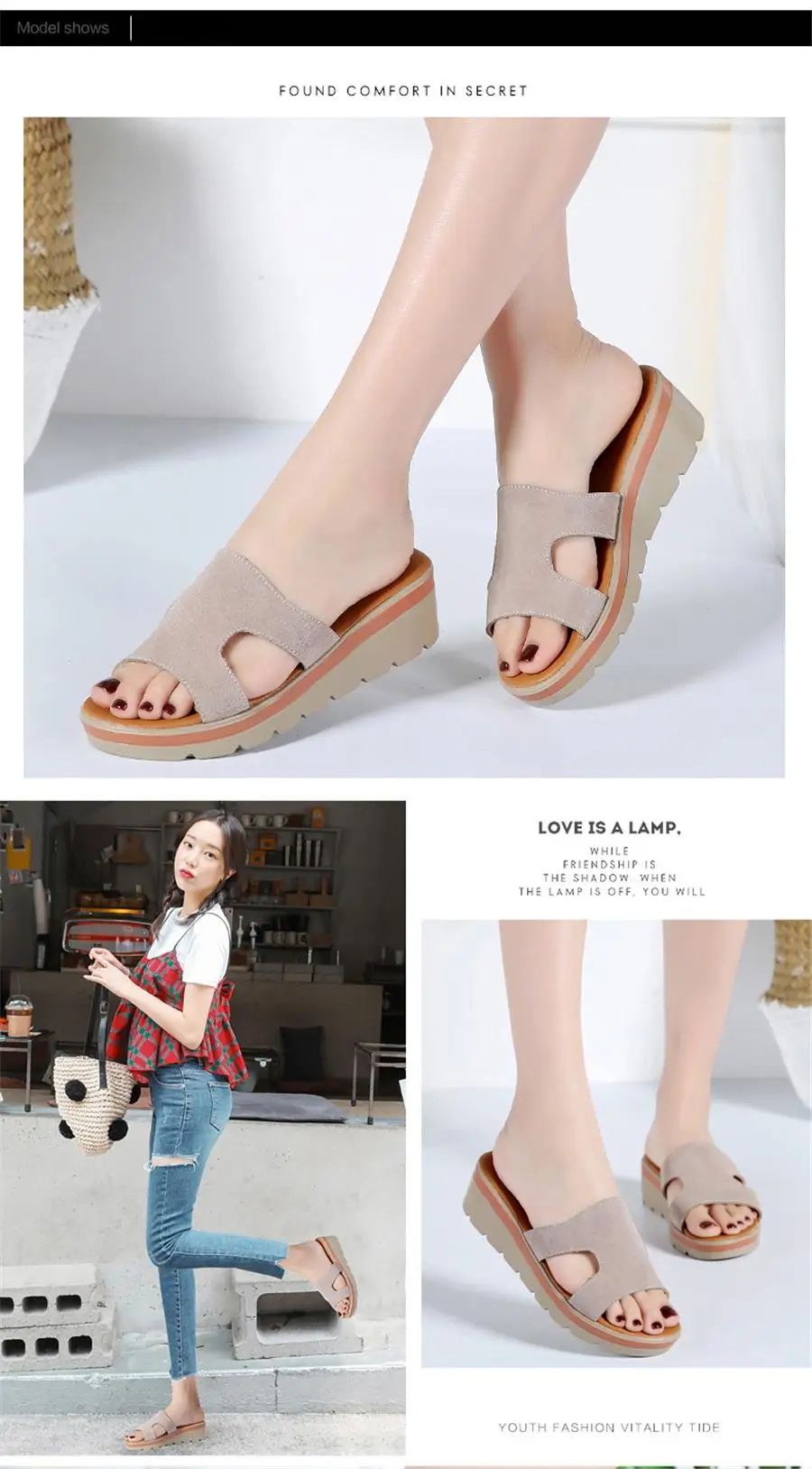 2020 Летние босоножки; Женская обувь на плоской подошве; Босоножки на платформе; Обувь на плоской подошве пляжные туфли, Обувь Слип-он, с круглым носком из кожи и замши шлепанцы без задника с открытыми пальцами вьетнамки женские 805