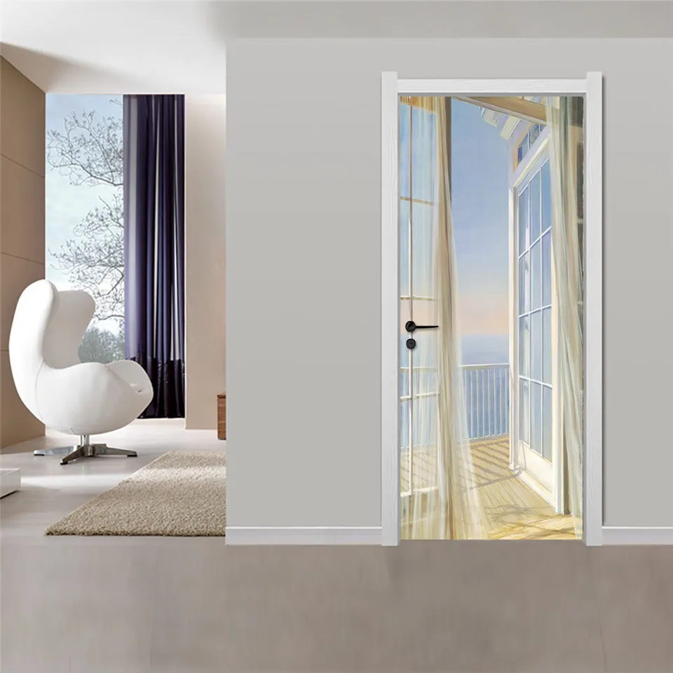 Виниловая самоклеящаяся Водонепроницаемая наклейка на дверь для пляжа и моря, сделай сам, Декор для дома, гостиной, ванной, съемный постер, настенные наклейки