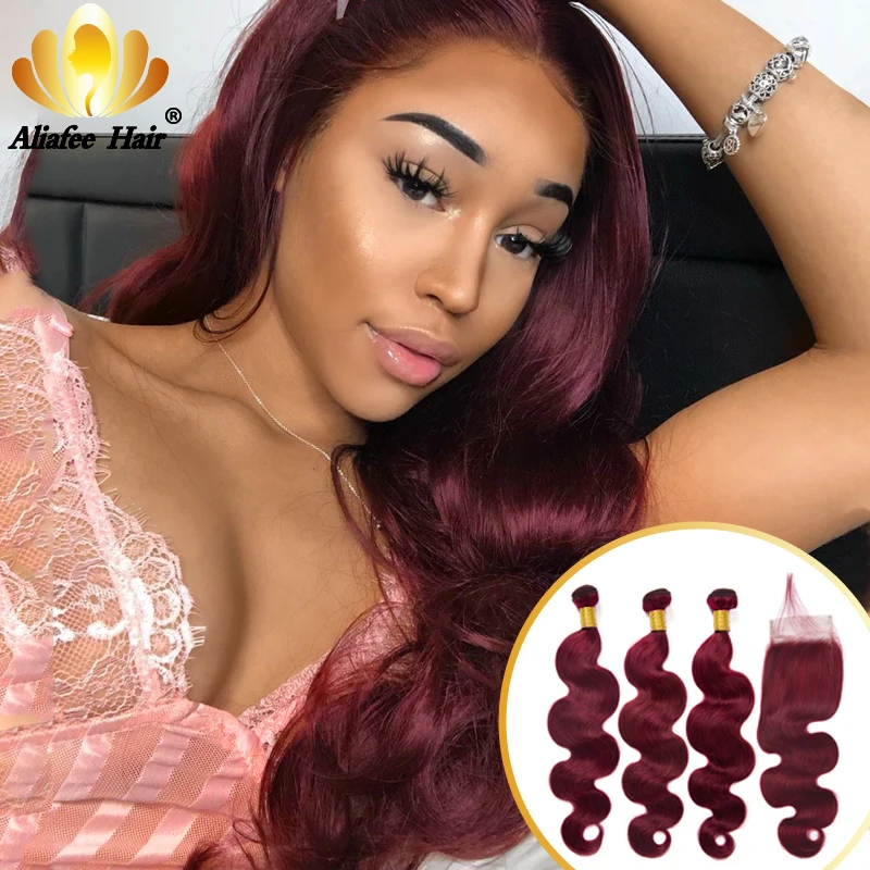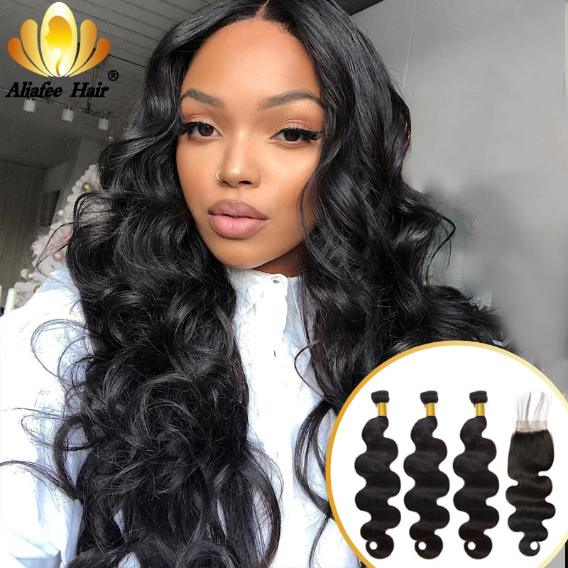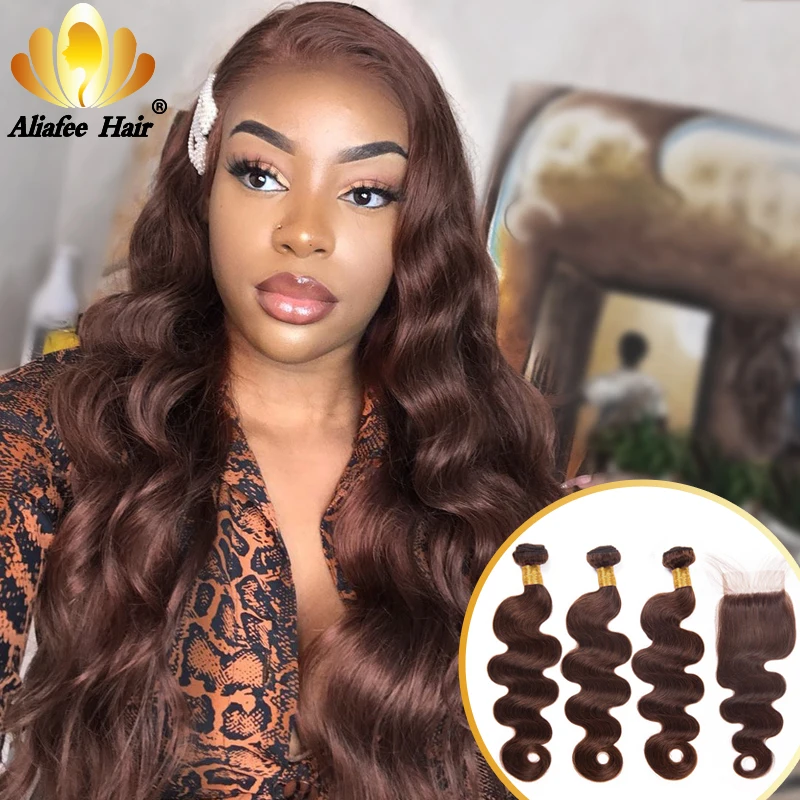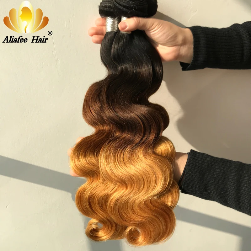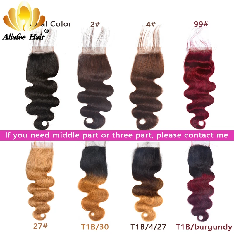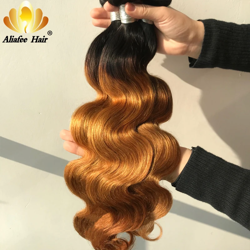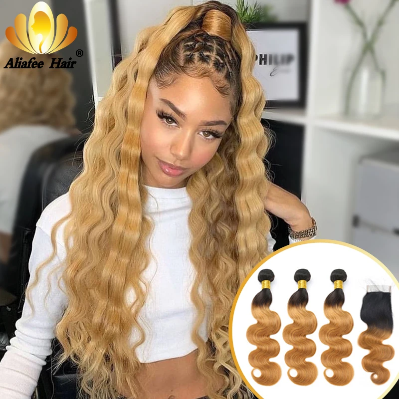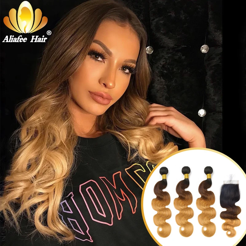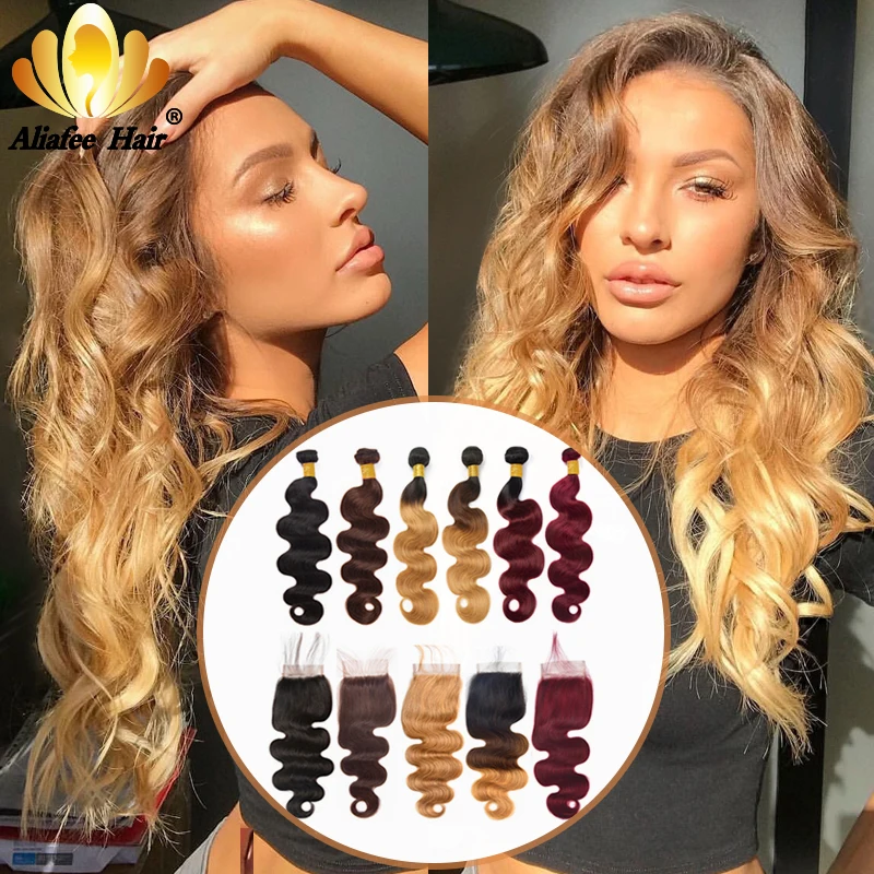 Aliafee Омбре Цвет волнистые пряди для тела с закрытием малазийские Remy человеческие волосы 34 пряди с 4x4 шнуровкой накладные волосы