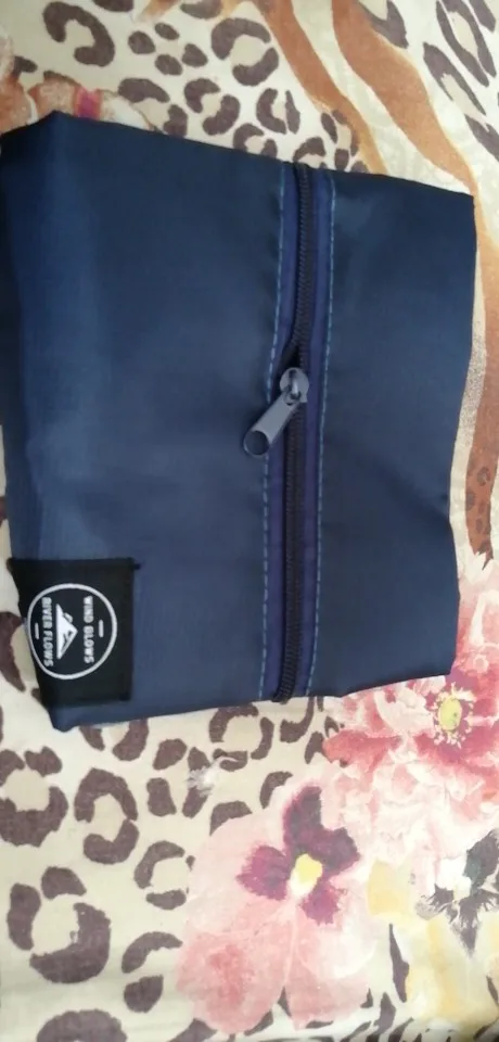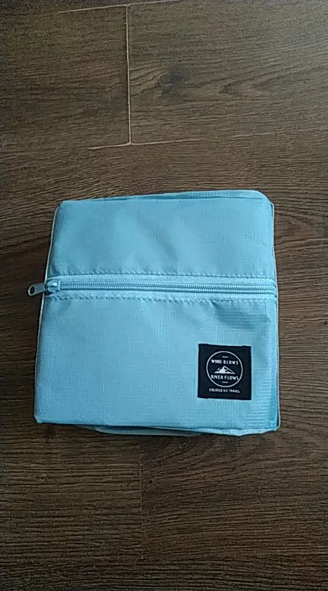 Сумочка из очень плотной плащевки, надеюсь воду не пропускает. Фурнитура хорошая, молния пластиковая работает очень хорошо. В собранном состоянии размером с маленький планшет. Заказала 12.01 пришла 26.01