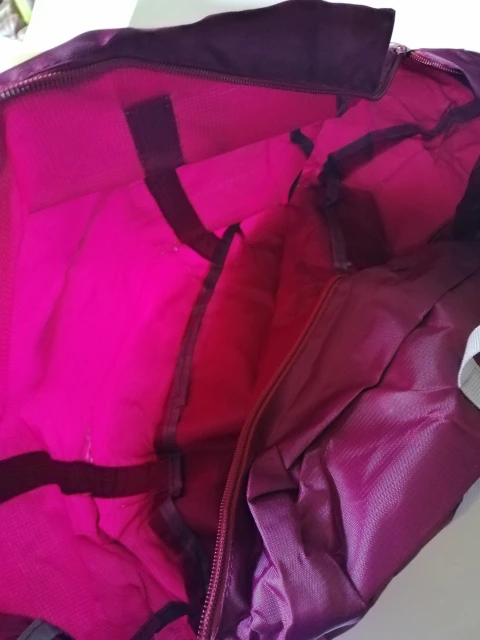 Сумка из очень тонкого материала, без подкладки, материал шуршит как бумага. Когда развернули, оказалась вся мятая, попробую отгладить. В целом за эту цену наверное можно сказать что хорошая сумка, но ожидали что материал будет больше похоже на плащевой, а не бумажный формат