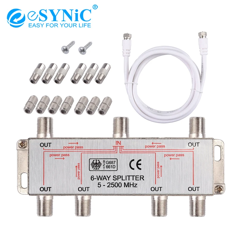 ESYNiC 6-полосный коаксиальный разветвитель цифрового ТВ Антенна SAT широкополосный разъем сигнала MoCA 5-2500 МГц спутниковый ресивер