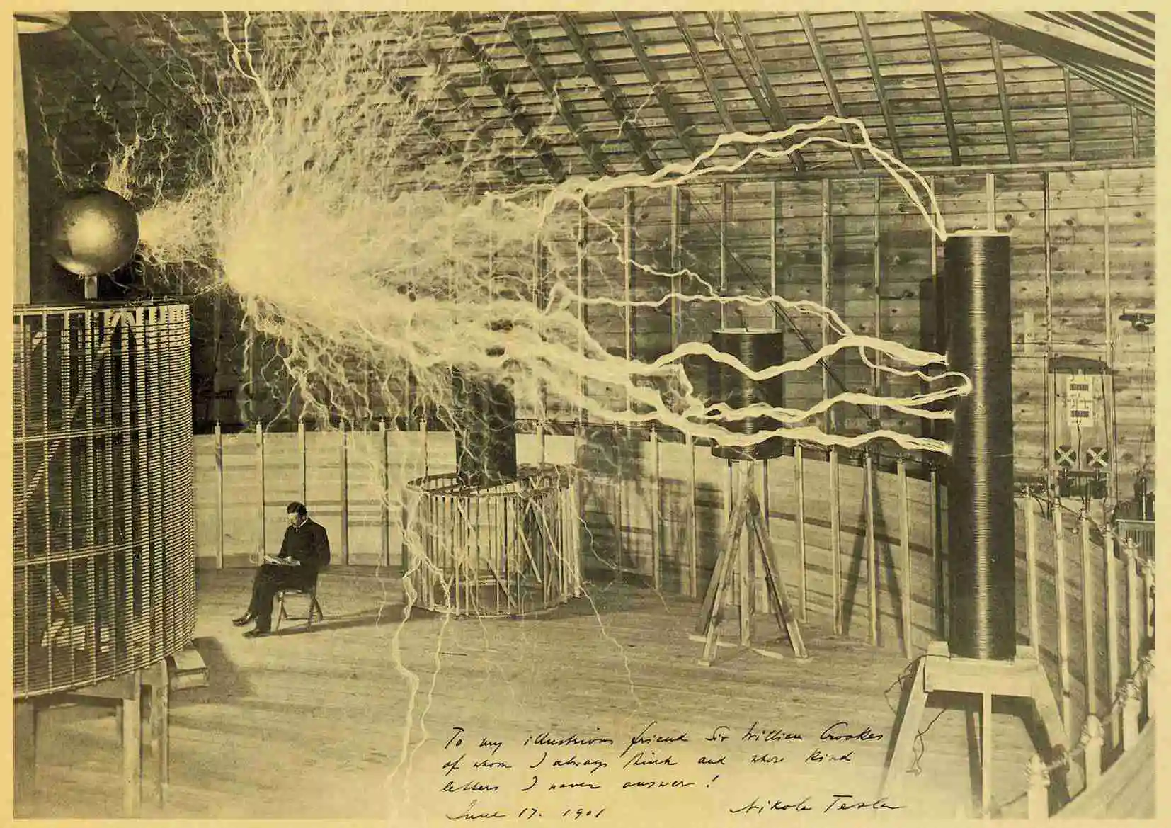 Винтажный постер и печать, Постер Nikola Tesla, катушка, турбинная ...
