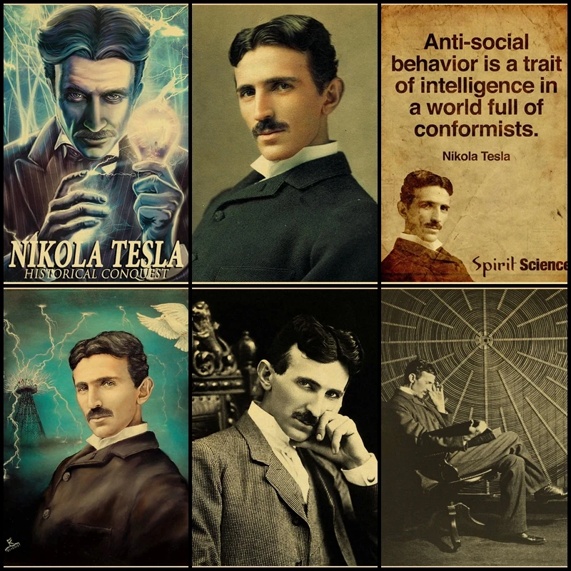 Известные ученые Никола Тесла Ретро Картина на холсте настенное иск...