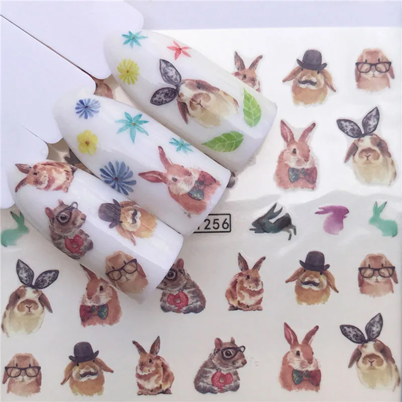 1 шт. стикер для дизайна ногтей кролик мишки милые животные изображение Печать Маникюр наконечник украшение для переноса воды слайдер наклейки для ногтей FW056
