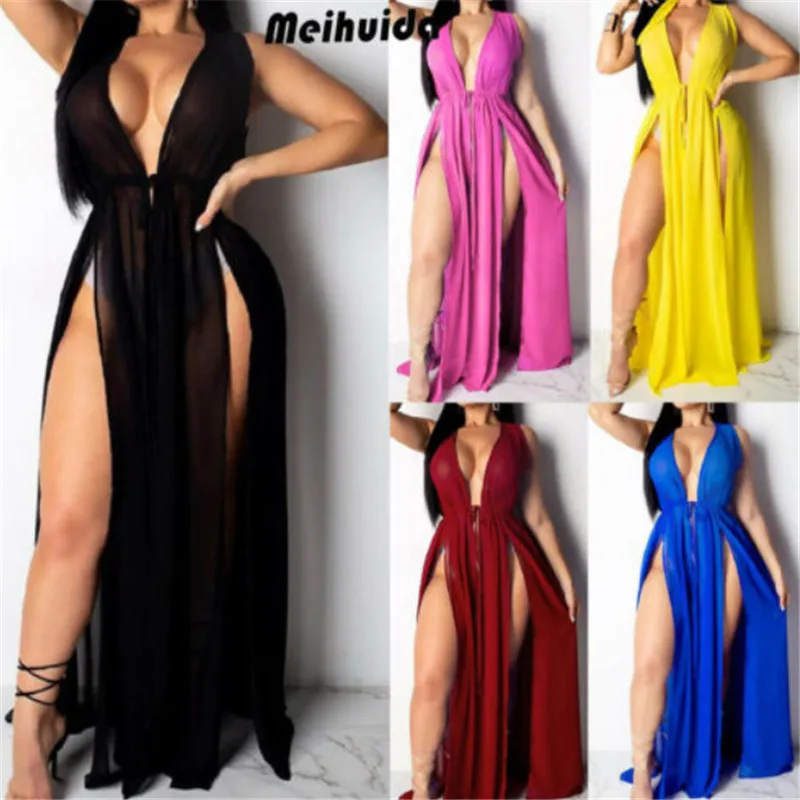 Женское пляжное платье-кимоно с глубоким V-образным вырезом