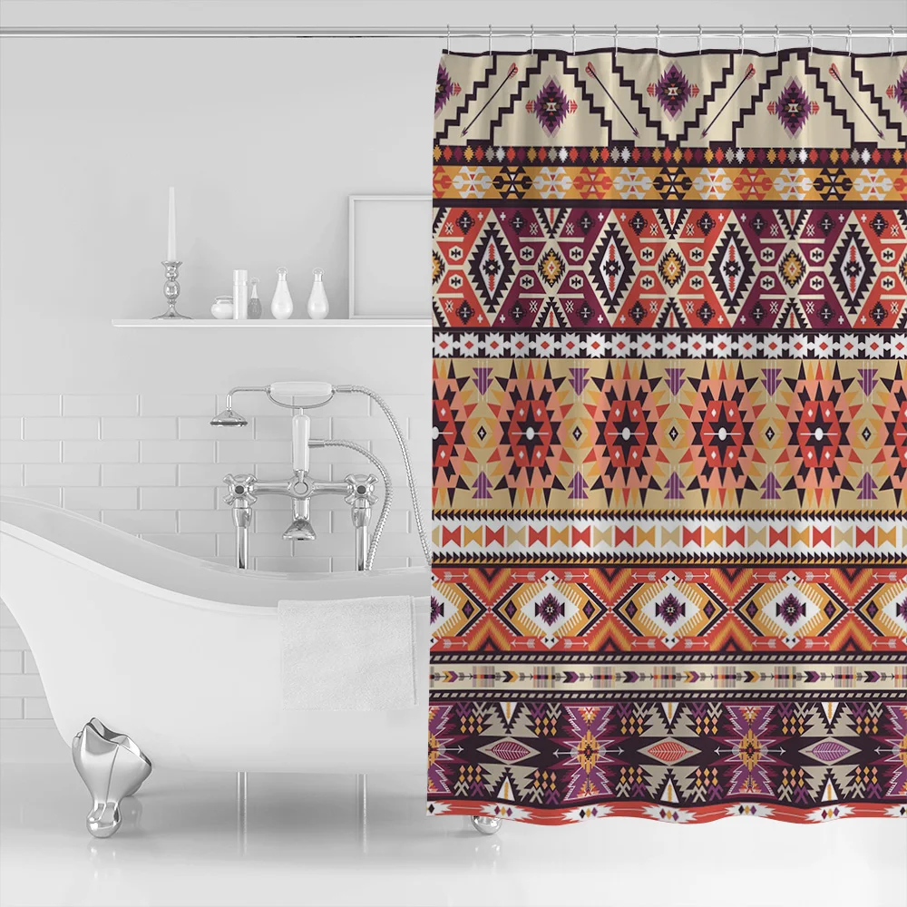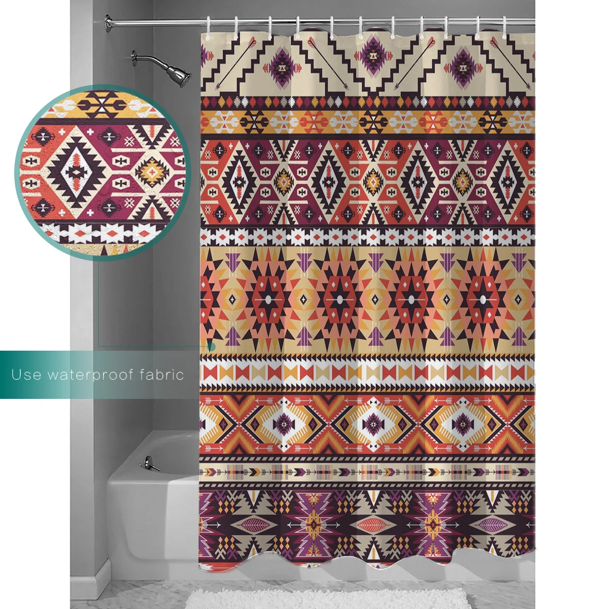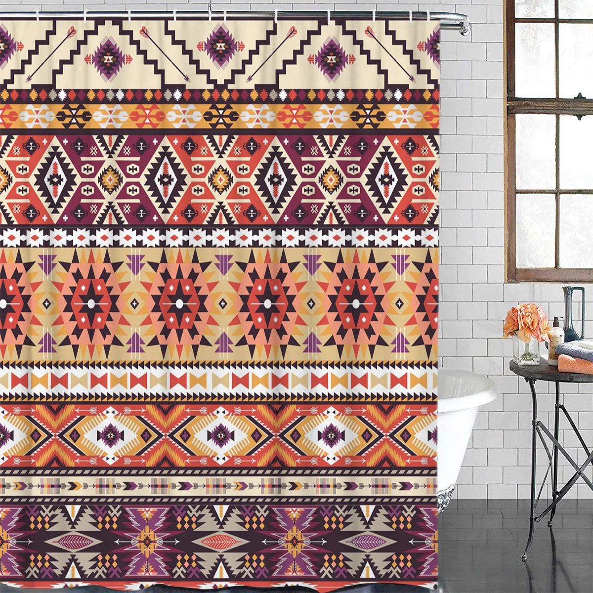 Треугольная, красная, фиолетовая, этническая, индийская, художественная, художественная душевая занавеска, водонепроницаемая занавеска для ванной из полиэстера
