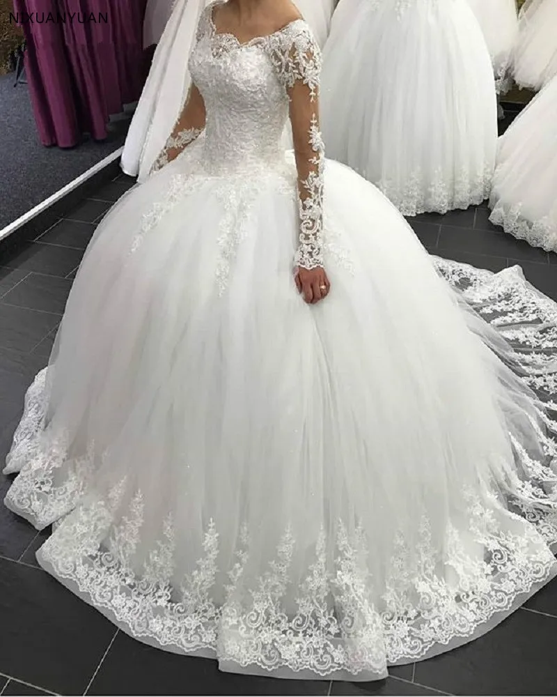 2022 элегантные свадебные платья с длинным рукавом, кружевное бальн...