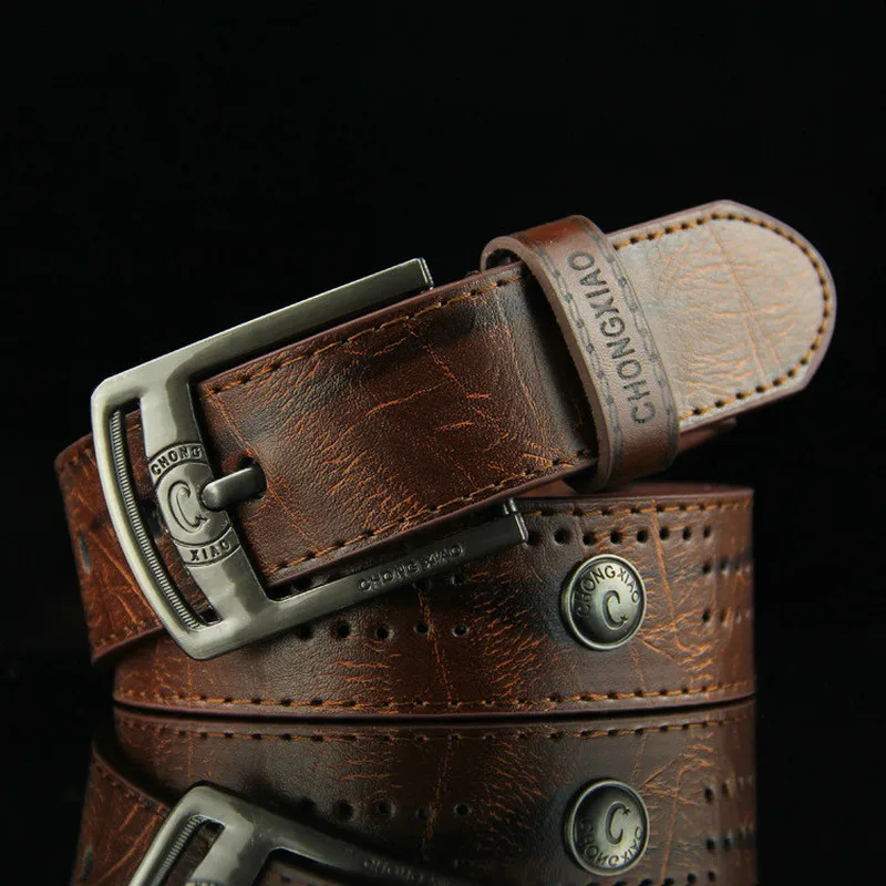 Ремень мужской из искусственной кожи, с вырезами и заклепками