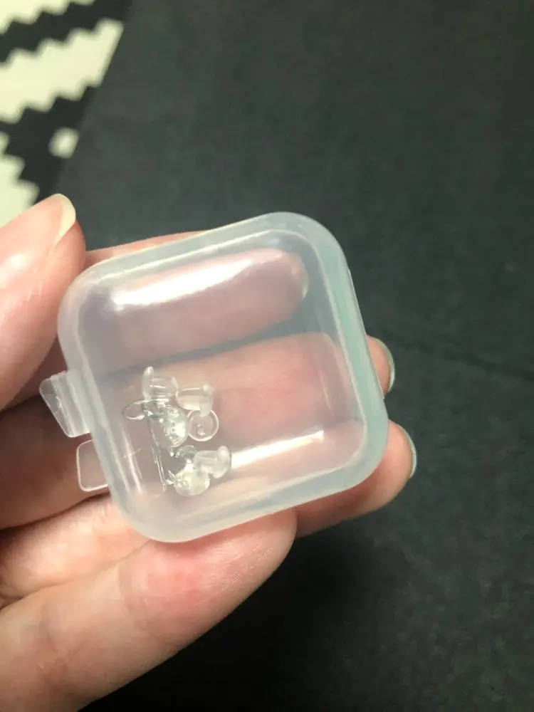 Они оказались меньше, чем я ожидала, но это оказалось даже лучше. Очень миленькие и аккуратные. Красиво смотрятся в ухе. Были упакованы в пластиковый бокс, который защищает их при транспортировке. И в комплекте 4 застёжки. 2 маленьких и 2 больших.