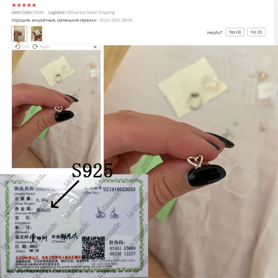 Серьги были доставлены быстро, это займет около трех недель с комбинированной доставкой во Францию. Они очень красивые и хорошо сделаны, маленькие, поэтому они незаметны. Каждая пара поставляется с двумя дополнительными застежками. Они хорошего качества, и у меня не было плохой реакции с ушами.